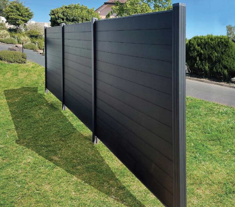WPC Kovlex Composite Fence. Начальный модуль [78992] с размерами ок. 180x180 (195) см (ширина x высота). Антрацит цвет. h1>