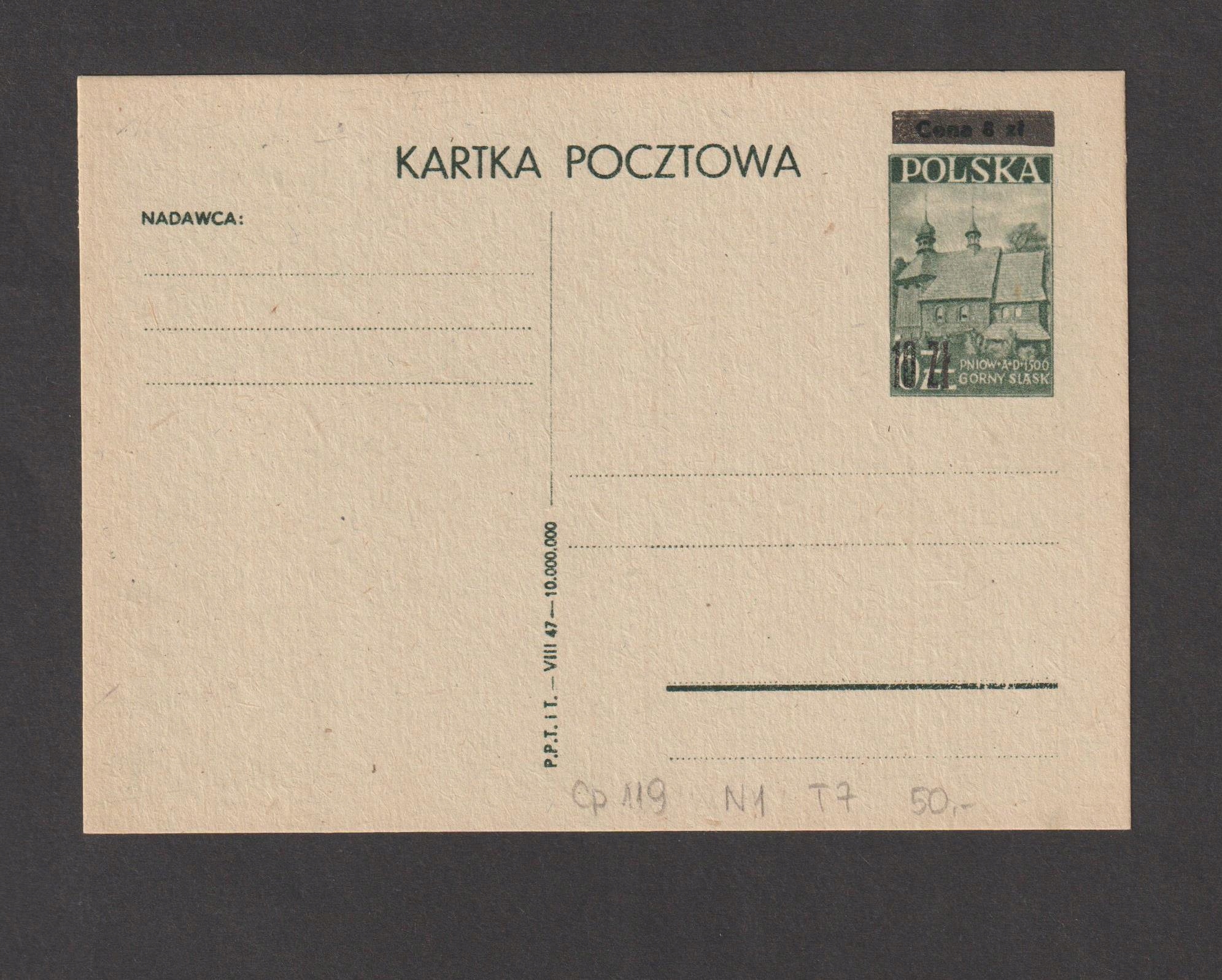 Просматривая «Cp 119 N1 T7 *.», вы можете быть уверены, что данный товар из каталога «Всесоюзные 1944 - 1960 гг.» будет доставлен из Польши и проверен на целостность. В цене товара, указанной на сайте, учтена доставка из Польши. Внимание!!! Товары для Евросоюза, согласно законодательству стран Евросоюза, могут отличаться упаковкой или наполнением.