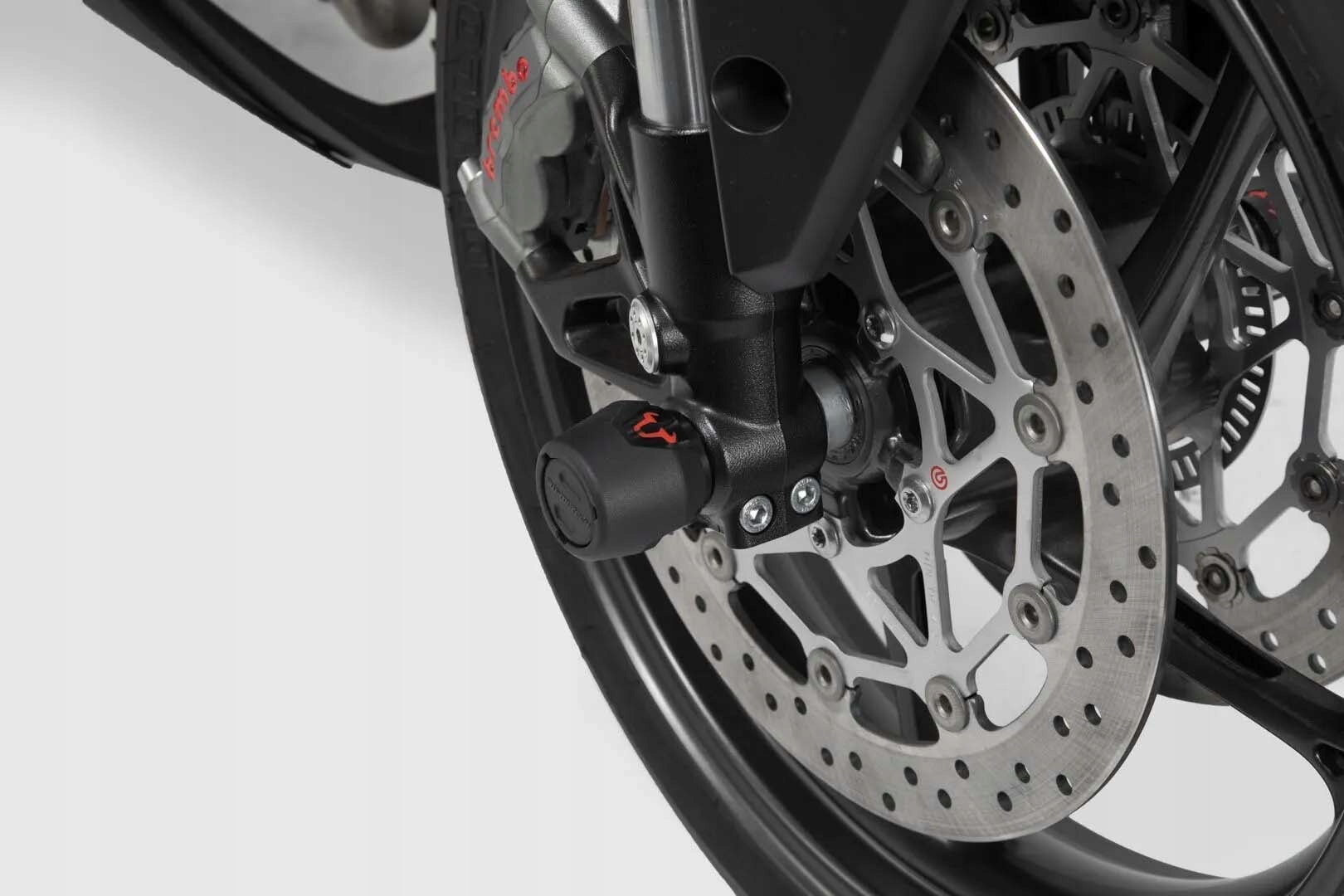 Эти защитники (ползунки), изготовленные из истирательного пластика, обеспечивают дополнительную безопасность для приводного вала. Диаметр 50 мм гарантирует большую контактную поверхность, которая позволяет оптимально распределять силы во время падения. Благодаря утонченному дизайну они идеально вписываются в стилистическую линию мотоцикла.