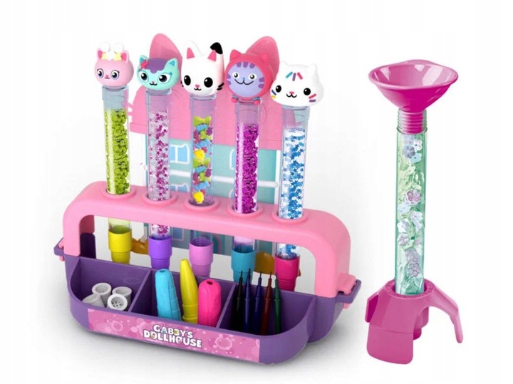 Gabby's Pen Factory — это креативный набор для создания собственных красочных ручек, вдохновленный миром кошачьего домика Габи. Ребенок может самостоятельно смешивать цвета, украшать и персонализировать свои ручки, развивая при этом ручной труд и воображение. Набор содержит все необходимые элементы для игры — идеально подходит для маленьких художников от 6 лет. Практичный рабочий стол и богатый набор инструментов для персонализации ваших ручек с помощью множества аксессуаров и милых котиков Габи. В набор входят 5 ручек с соответствующими персонажами, разноцветные чернила, блестящие украшения, наклейки для персонализации рабочего стола и все необходимое, чтобы дать волю вашему воображению.