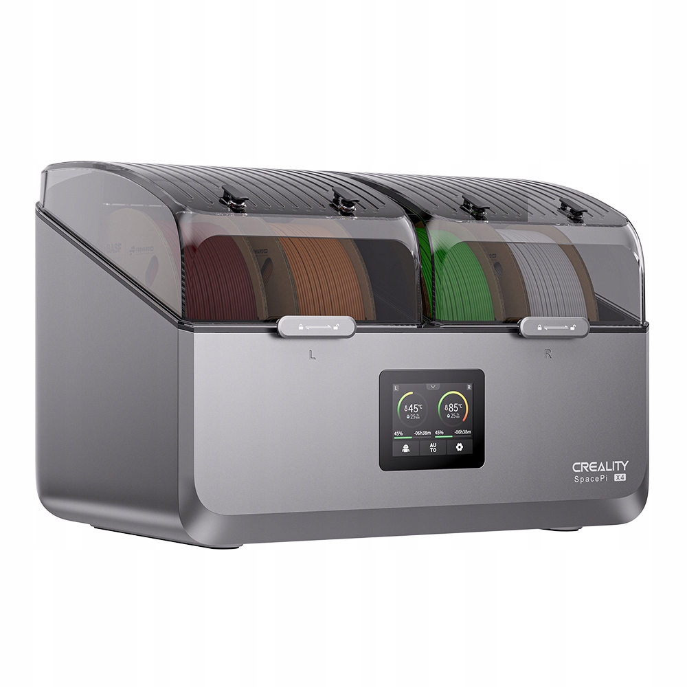 Creality SpacePi X4 обеспечивает идеальные условия хранения нитей, используя передовую технологию прецизионного нагрева. Пользователь имеет полный контроль над температурой и временем сушки, что позволяет настроить параметры под конкретный тип материала. Независимо от того, используете ли вы гигроскопичные нити, такие как PLA, или более требовательные материалы, такие как PETG или нейлон, SpacePi X4 эффективно удаляет влагу, обеспечивая стабильное качество печати и надежные результаты.