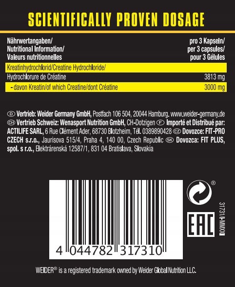 WEIDER CREATINE HCL — КРЕАТИН ГИДРОХЛОРИД ДЛЯ ЛУЧШЕГО Усвояемости