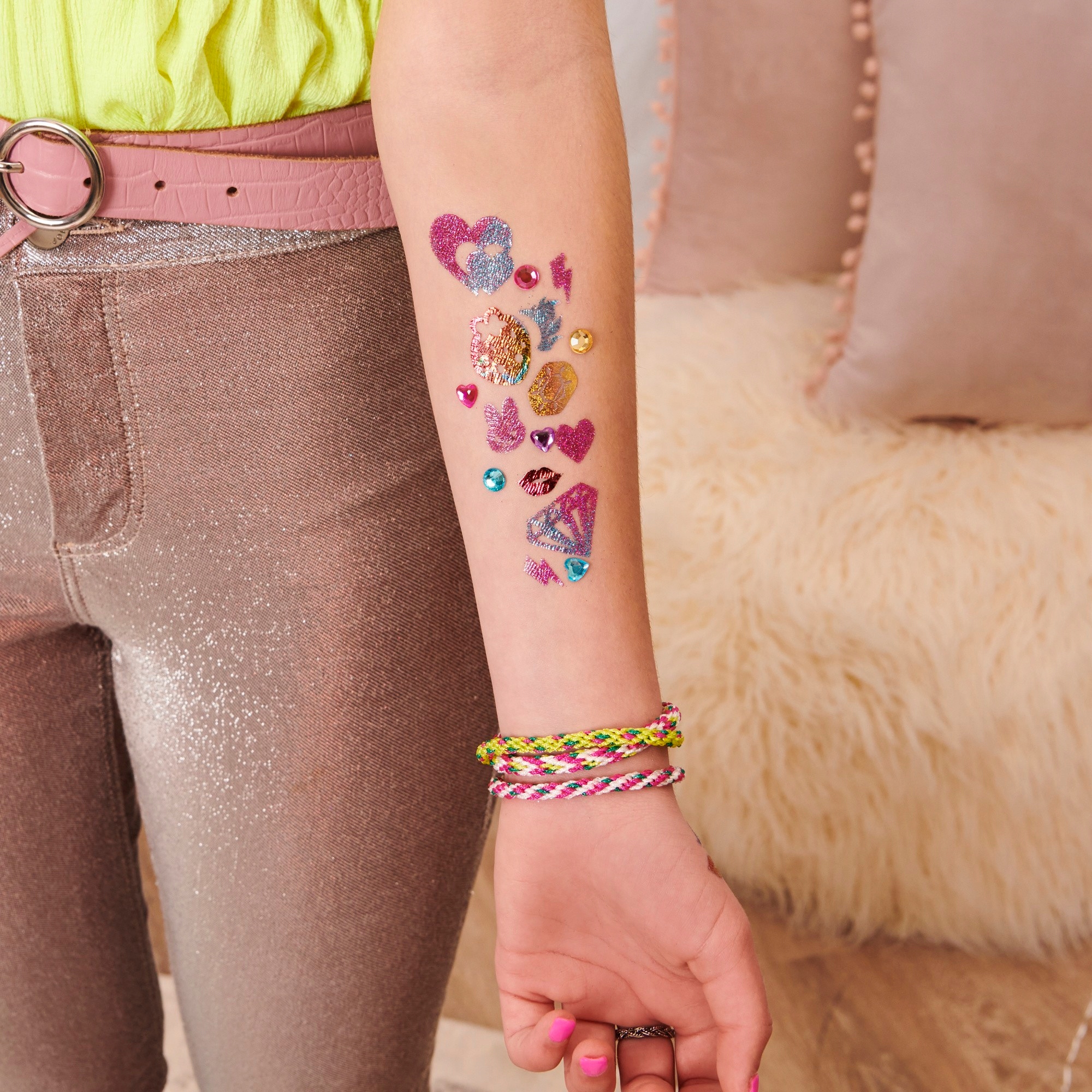 Набор выглядит одновременно девчачьим и профессиональным. Благодаря этому девочка сможет создавать уникальные украшения, напоминающие мерцающие, реалистичные татуировки.