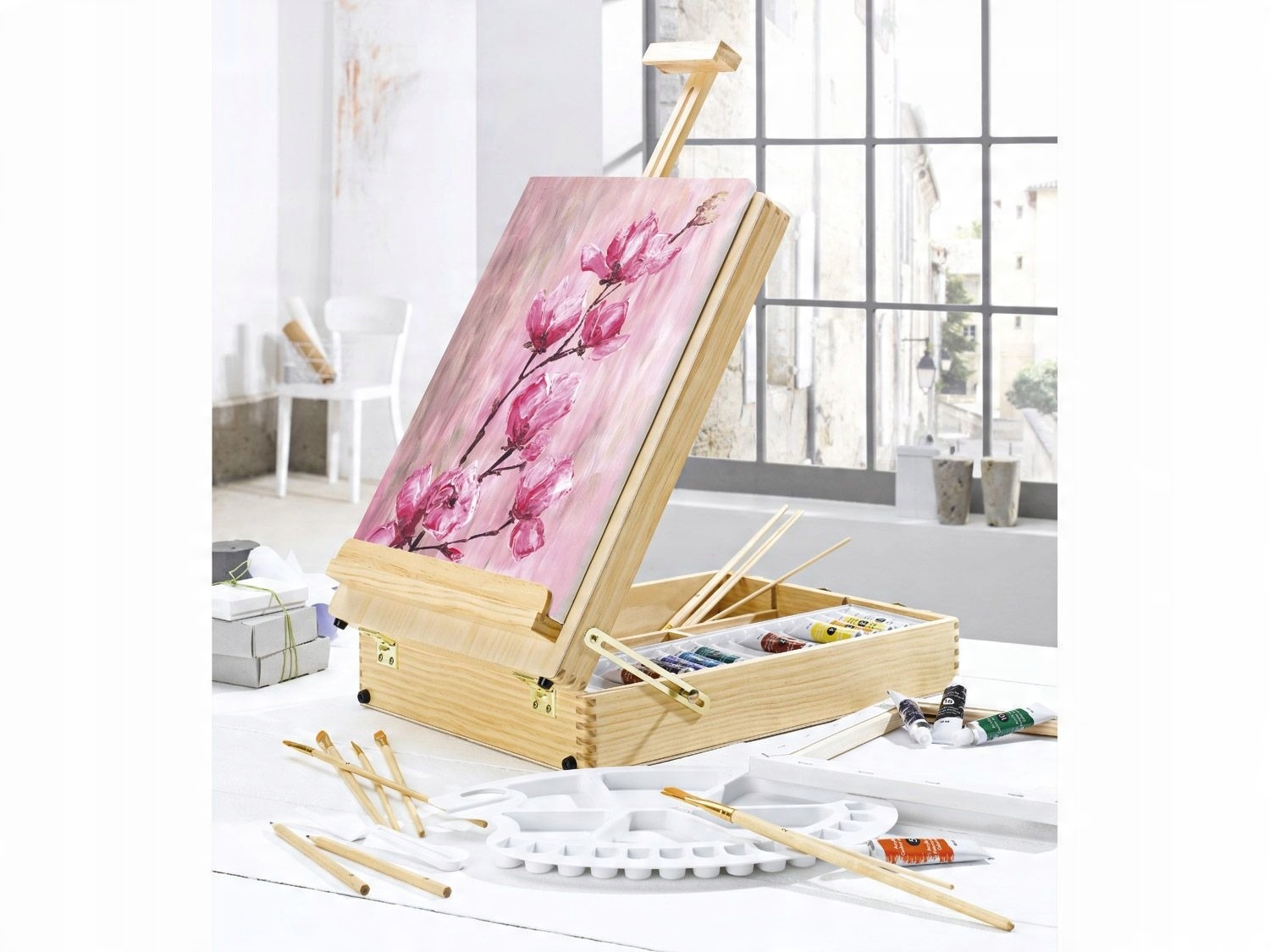 - Настольный мольберт в чемодане – удобное решение для рисования.