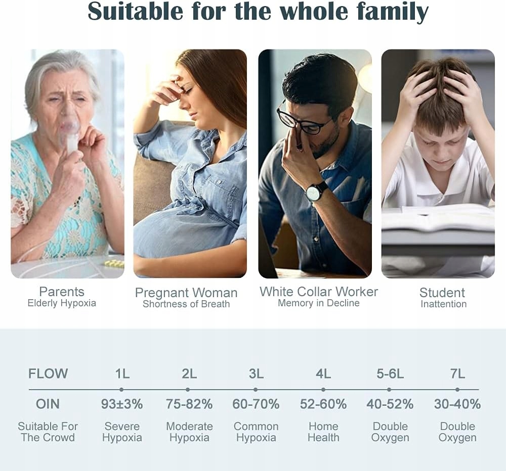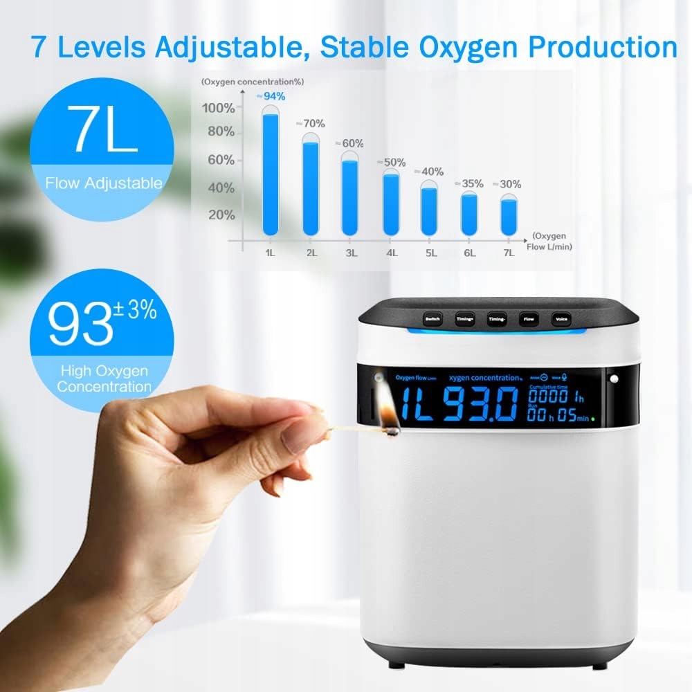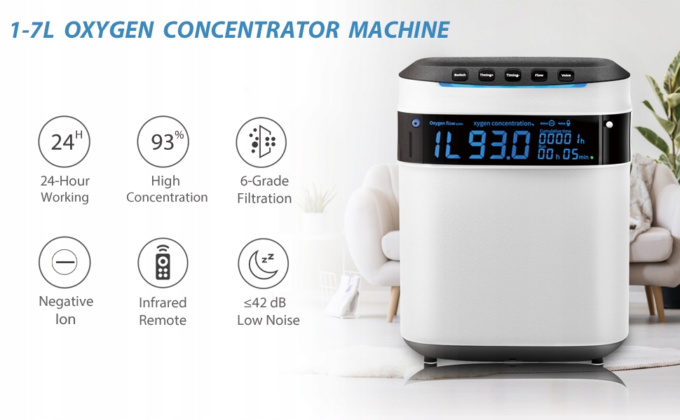 Регулируемая концентрация. Постоянный расход 1–7 л/мин, регулируемый 30–93%. Особый совет? Это домашнее вспомогательное устройство, внебольничный генератор кислорода, подходящий только для ежедневного снабжения здоровья. Не рекомендуется людям с серьезными заболеваниями или людям, которые полагаются на медицинский кислород, чтобы остаться в живых.