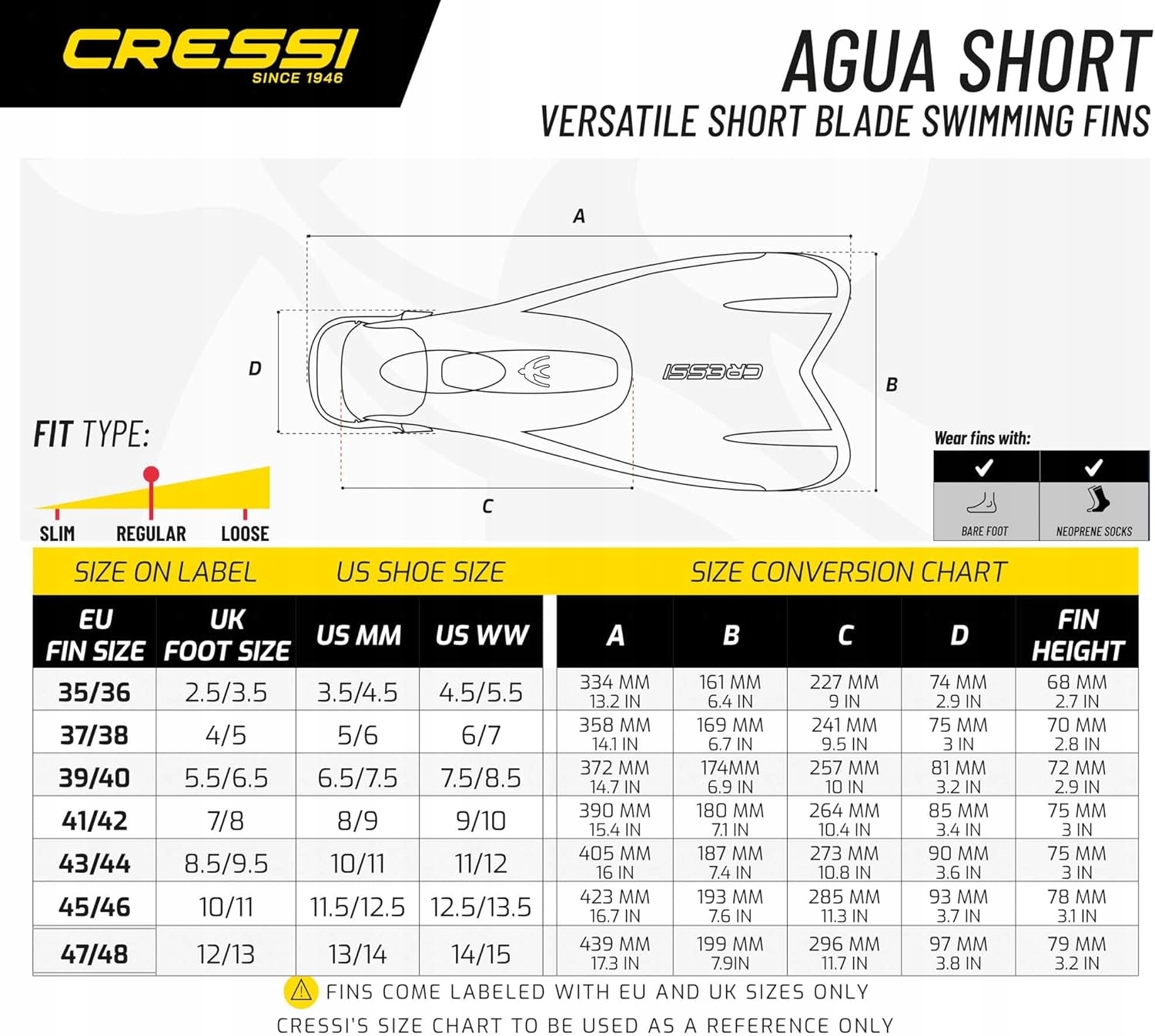 cressi-sub fins agua short czarny 39-40 h1>