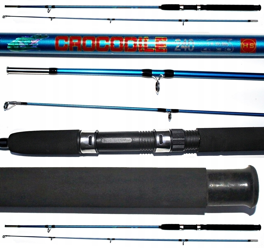 стержень крокодила 240, изготовленный из полного стеклянного волокна с очень высокой прочностью в экстремальных условиях. Идеально подходит для рыбалки с земли, а также в живом методе крупных хищников - сома, щука, Zander. Пустые цвета черный или синий случайный выбор. , Длина транспорта - 122 см. - 250gr. , Вес - 387gr