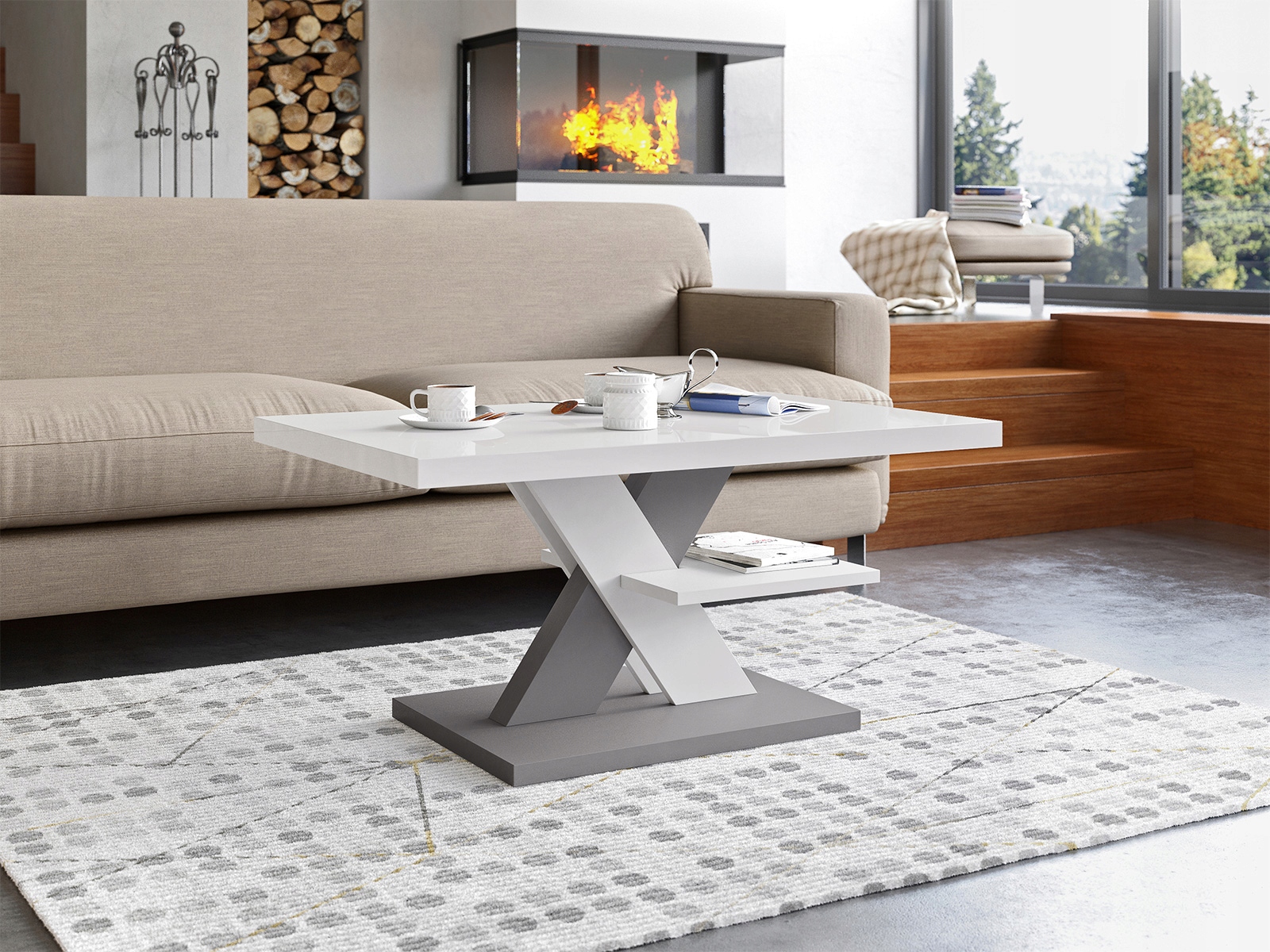 CROSS Білий глянець / сірий | ЛАВА СТОЛ ІЗ ПОЛИЦЮ