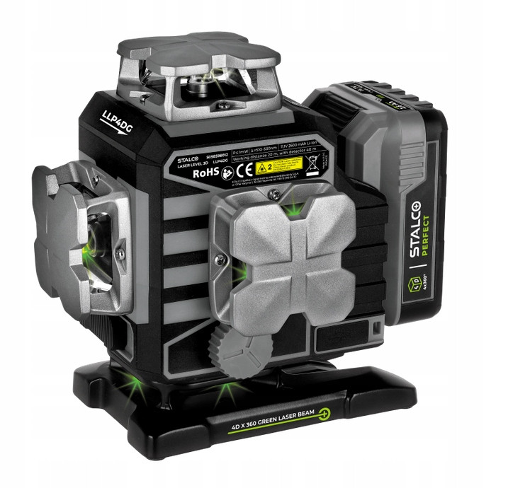 4D LLP4DG Cross Laser от Stalco Perfect - это расширенный измерительный инструмент, который идеально подходит для точной конструкции, ремонта и отделки. Оснащенный 16 зелеными лазерными линиями, он предлагает полную 4D -проекцию, которая позволяет провести точные измерения в каждой плоскости. Лазер оснащен функциями, которые облегчают работу, такие как управление Bluetooth, регулировка яркости луча и пульт дистанционного управления. Все это заключено в постоянный защитный чемодан, который гарантирует безопасность во время транспорта и хранения
