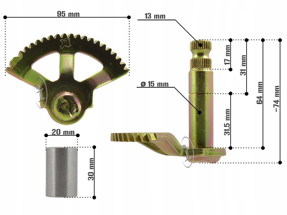 Вал - колесо кик-стартера, полумесяц для скутеров 2Т