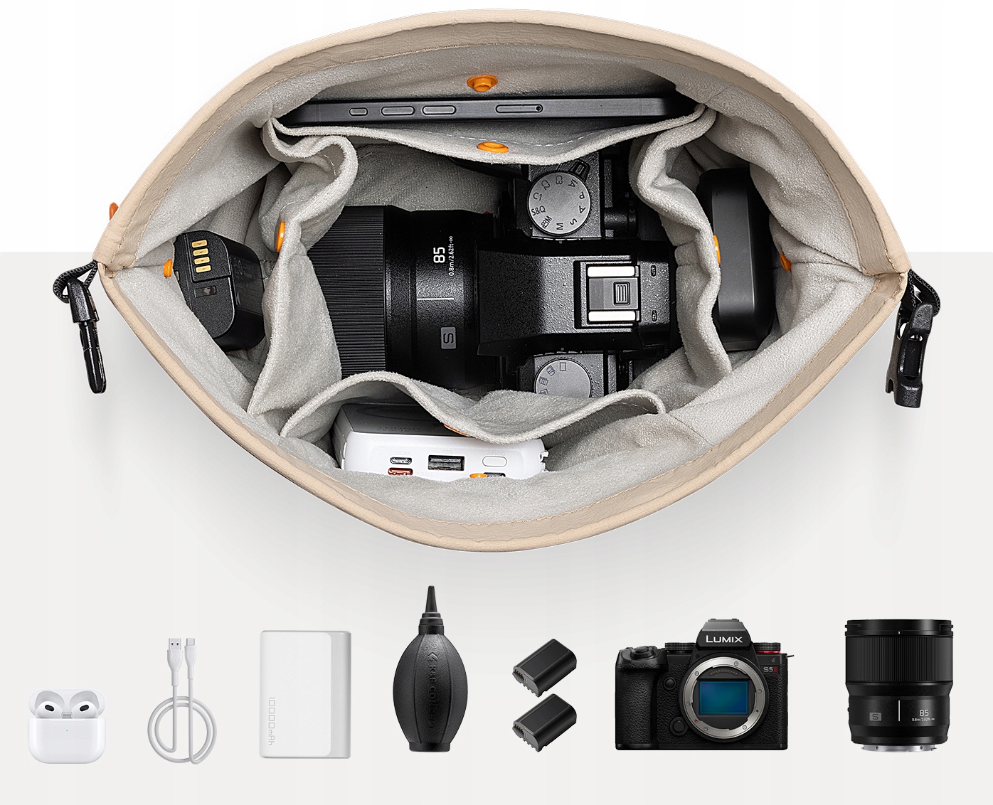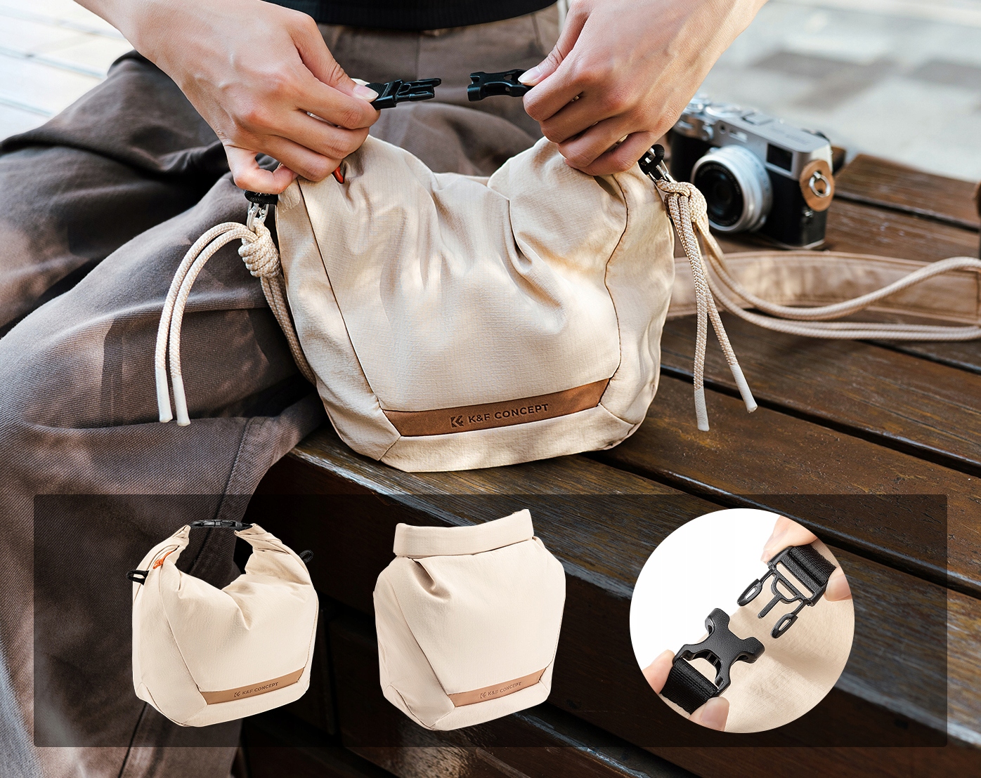В наборе вы найдете ремешок, предназначенный для универсальности - его можно легко прикрепить как к сумке, так и к камере. Благодаря этому сумка получает дополнительную функциональность, и пользователь имеет возможность адаптировать конфигурацию к своим потребностям.