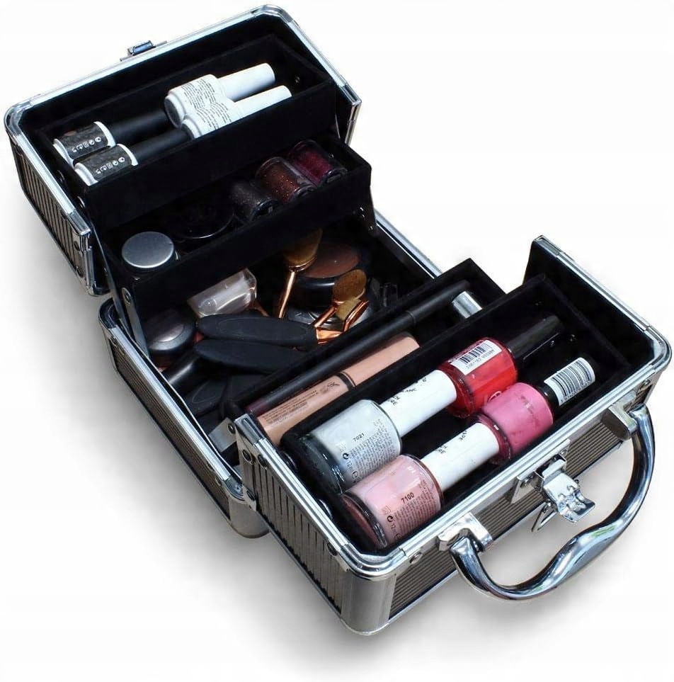 - Наша маленькая косметическая коробка идеально подходит для хранения косметики, ногтей и аксессуаров в безопасном месте. Дизайн авиационного чемодана имеет прочную алюминиевую раму и края, со стильными закругленными углами для защиты и твердых элегантных текстурированных панелей