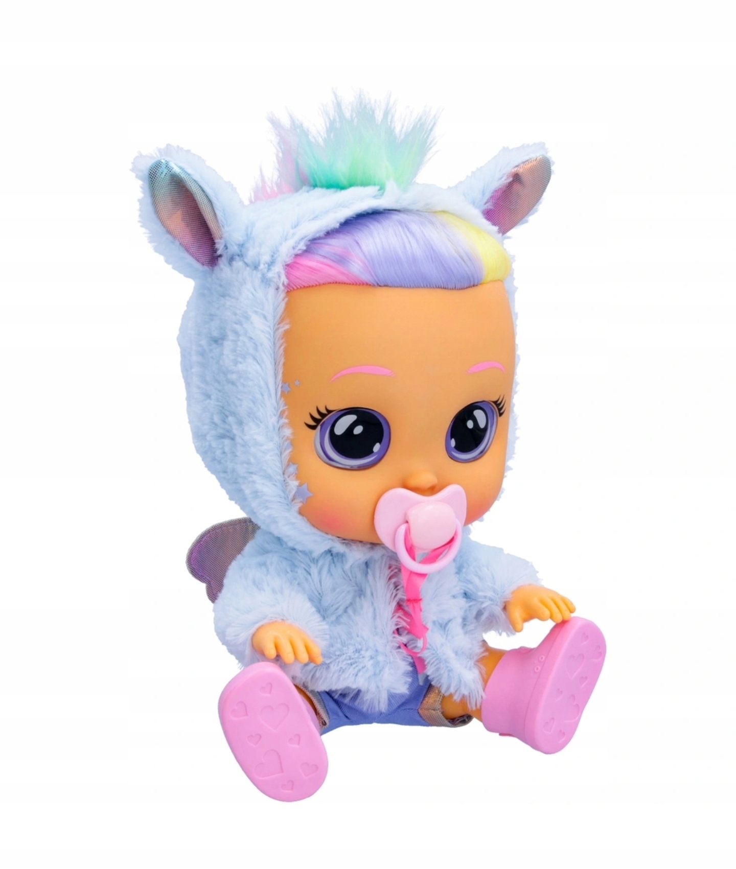 Познакомьтесь с куклой Дженна Cry Babies Fantasy в новом облике! Как и у всех обновленных Cry Babies, у нее очень мягкие волосы, еще более реалистичные кристальные глаза и улучшенное, более мягкое лицо. Вес также уменьшился, и теперь она впервые одета в милый фэнтезийный наряд. Конечно, как и все Cry Babies, она плачет большими слезами и издает реалистичные детские звуки, когда вы отнимаете у нее соску. Если вы вернете его, он перестанет плакать. Вы также можете аккуратно положить их, чтобы успокоить. В комплект Дженны входит сменный наряд, пара туфель и соска в тон.