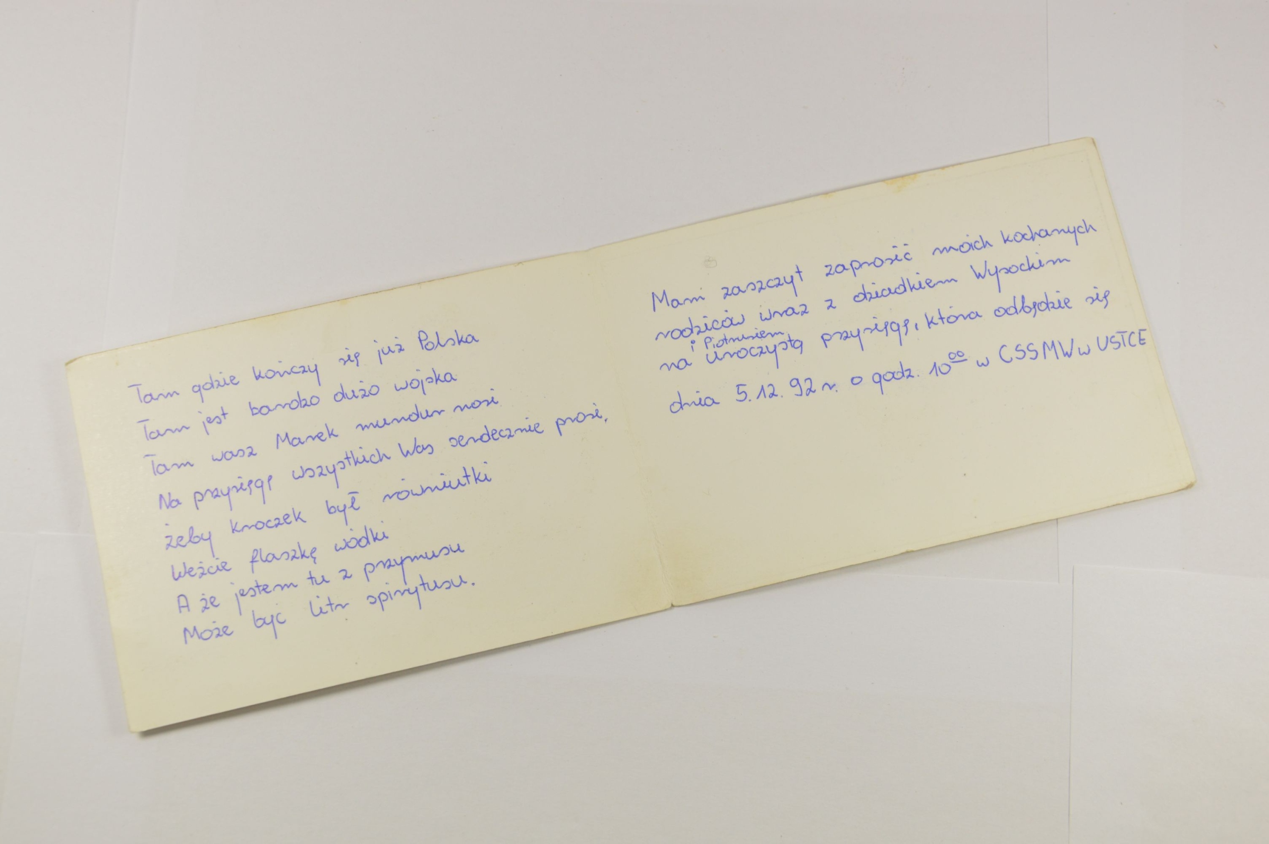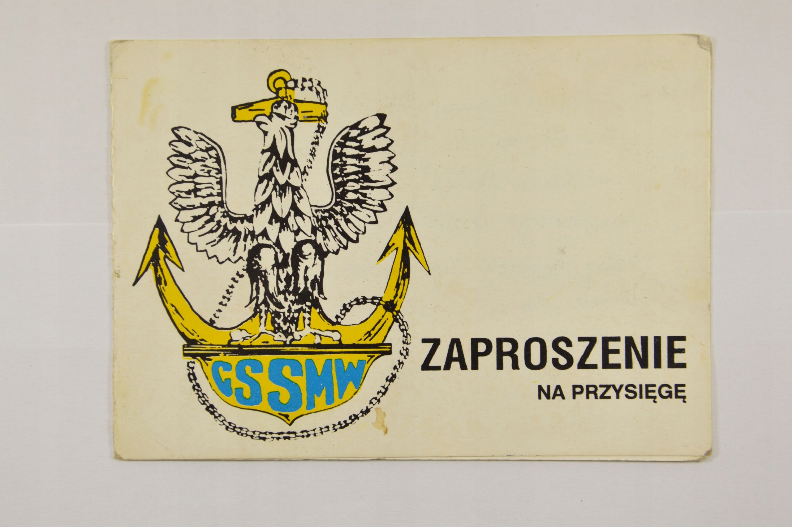 CSSMW ZAPROSZENIE NA PRZYSIĘGĘ MARYNARKA WOJENNA USTKA 1992 r.