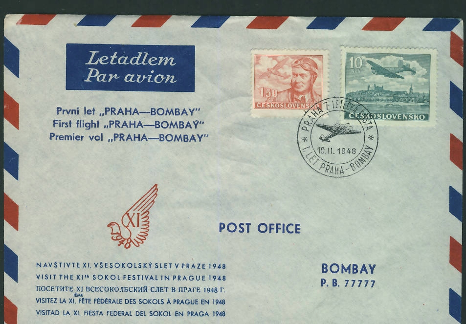 ЧССР 1948 г. I LOT Прага Бомбей 1948 г. Авиация авиационная авиация + прием ул.