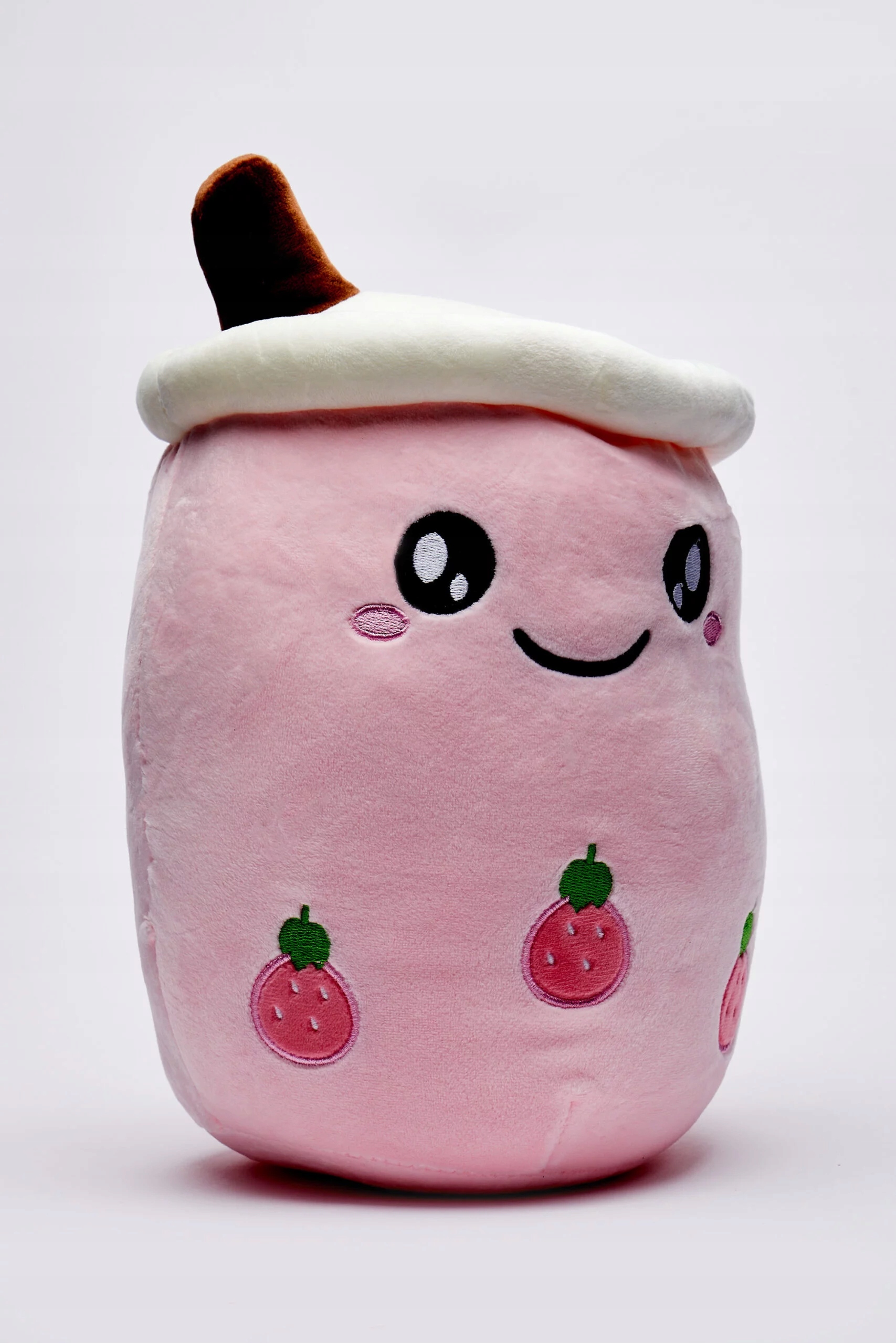Cuddly Mascot Pillow Plush Bubble Tea, полунично-рожевий