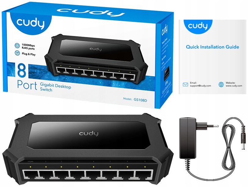 Cudy GS108D 8-портовий комутатор GIGABIT, високошвидкісний мережевий розгалужувач