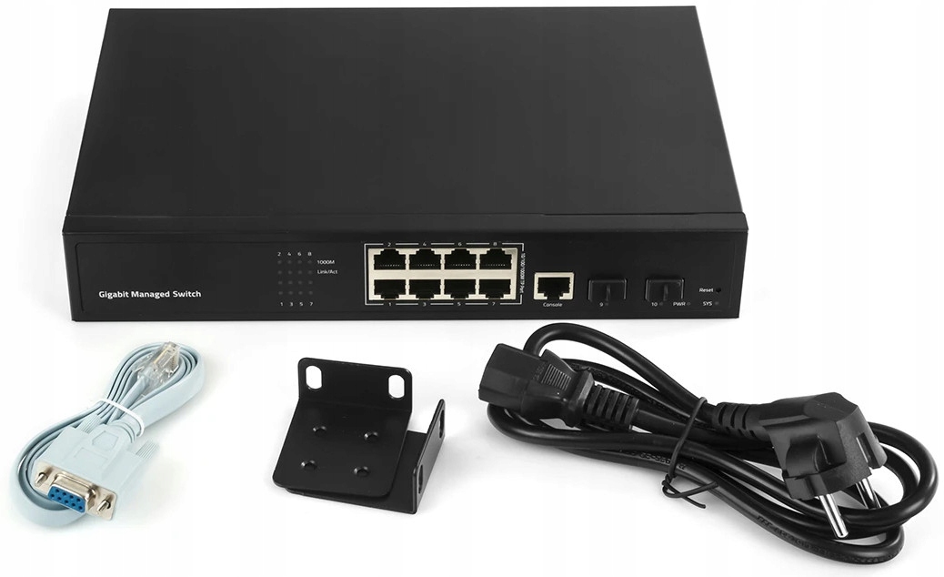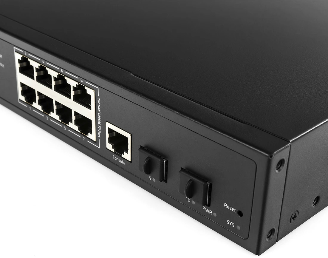 - Количество портов - 8 портов 10/100/1000M RJ -45, 2 порты SFP, 1 консольный порт