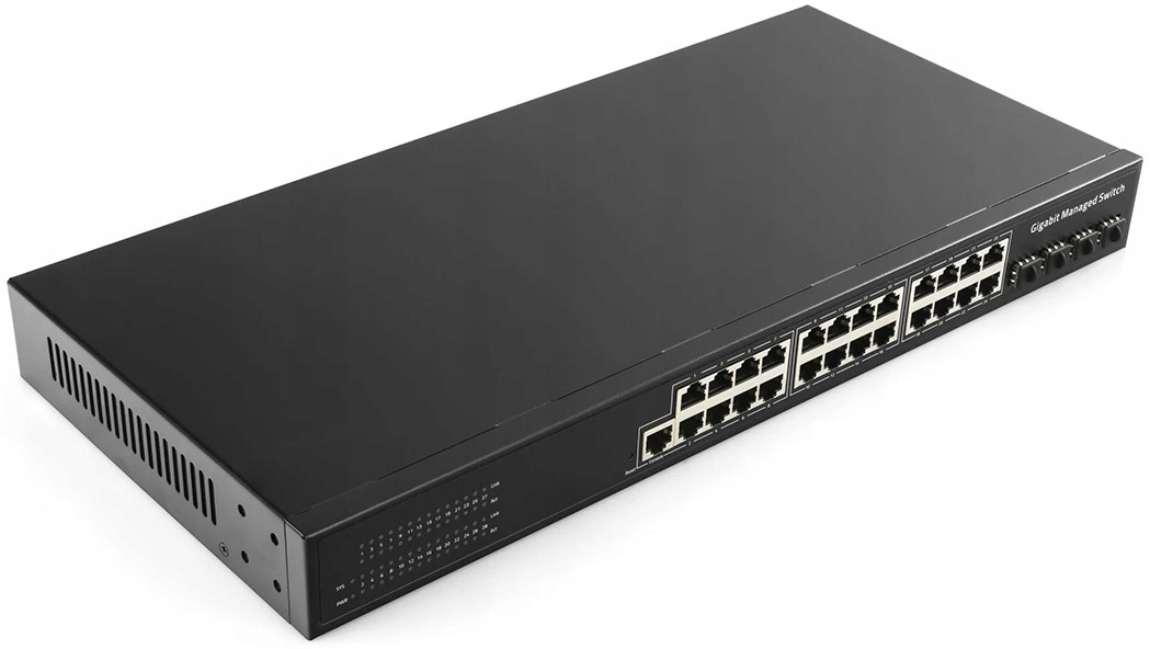 24-портовый переключатель, гигабит, 4x SFP, 1x консоль, металлический корпус