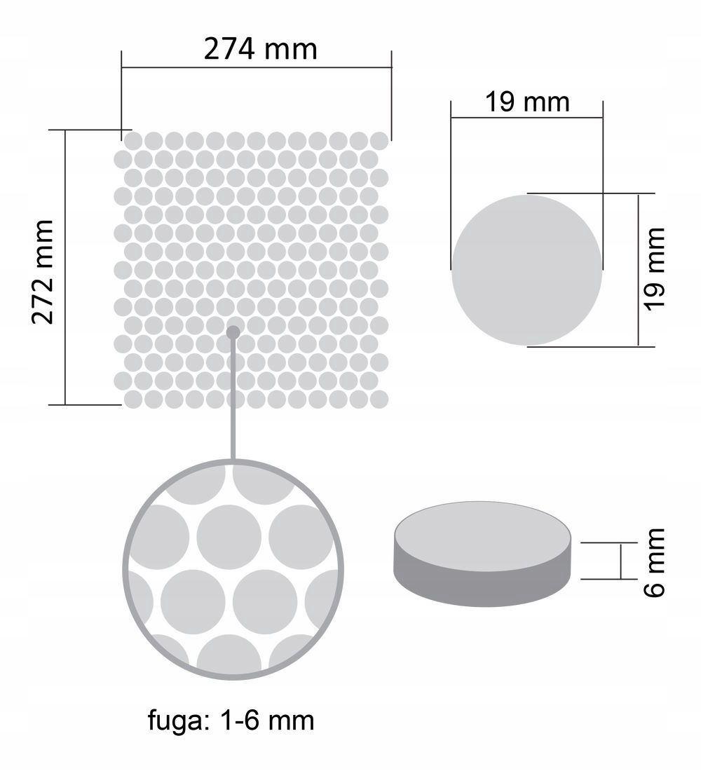 dimensions 274 мм (0,075). одной плитки - 19 x 19 мм