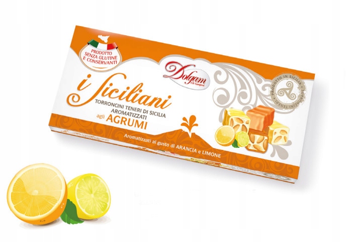 DOLGAM I SICILIANI TORRONCINI TENERI DI SICILIA AROMATIZZATI AGLI AGRUMI КОНФЕТЫ С НУГОЙ С ЦИТРУСОВОЙ ПОКРЫТКОЙ 100г
