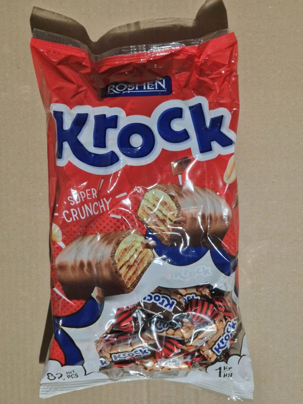 Krock-это 36%карамельных конфет, соленая паста из арахисовых и кукурузных чипсов в какао-покрытии. В одном пакете он находит муниципальный хруст со соленой нотой. Конфеты упаковали 1 кг.