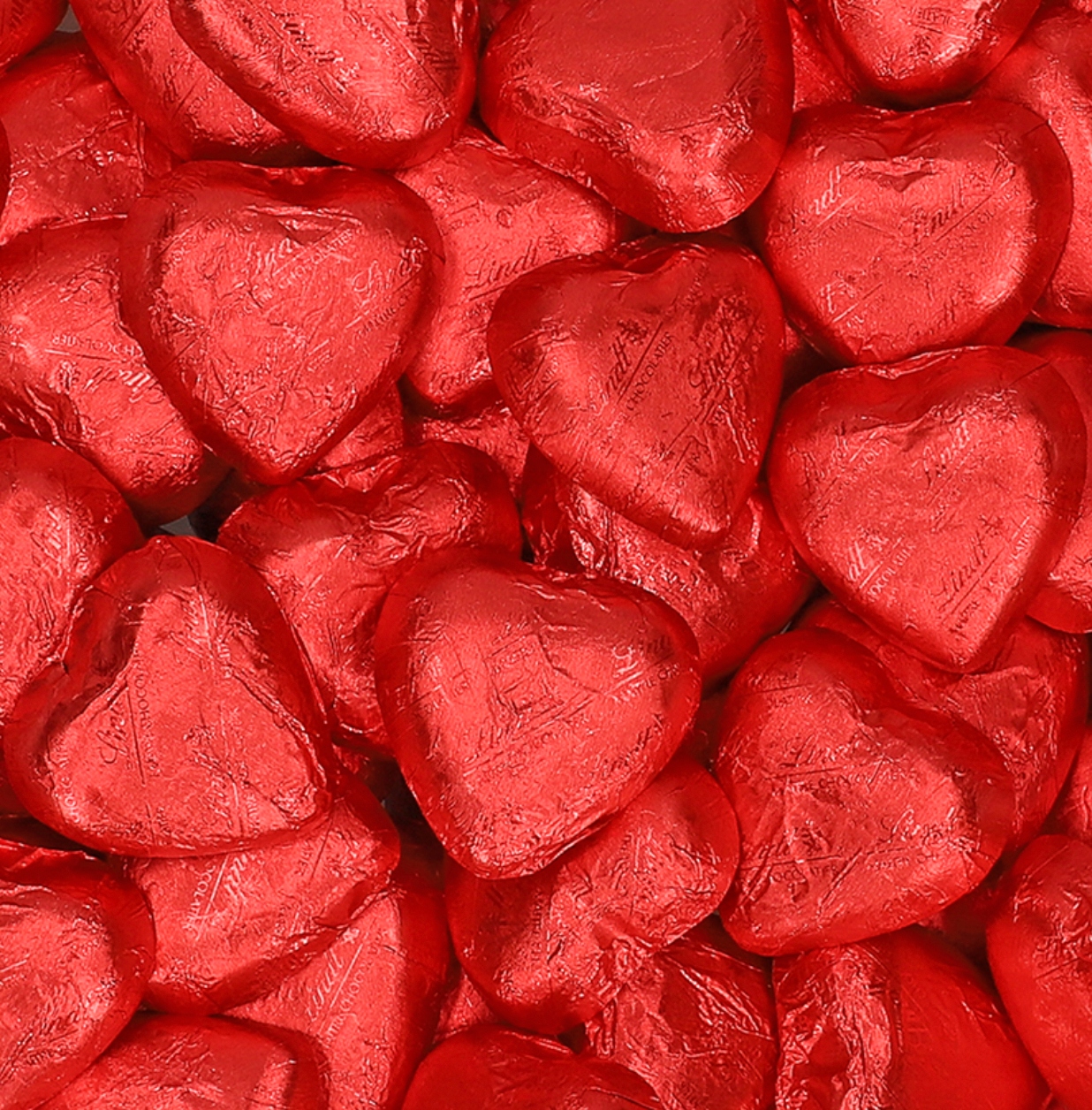 Красные сердечки Lindt составляюток. Высота 3 см.