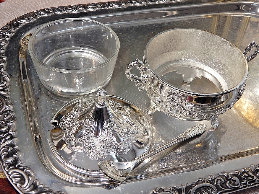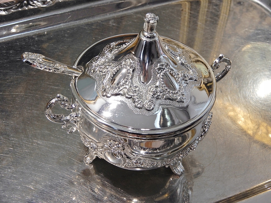 Сахарница из цинкового сплава, покрытая серебром.