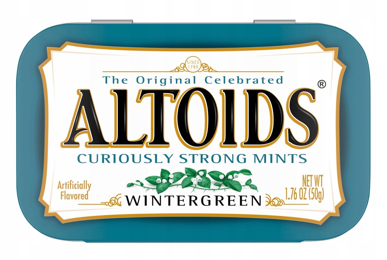 Оригинальные, американские, культовые леденцы со вкусом «Винтергрин» в металлической коробке.