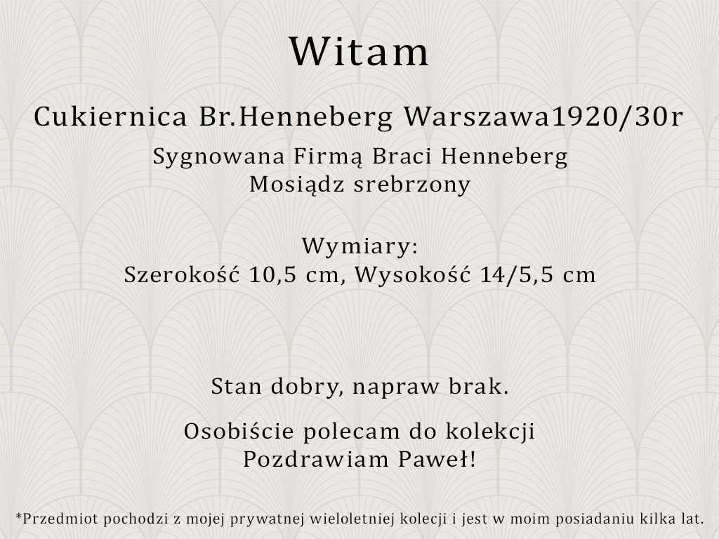 САХАРНИЦА - КОРЗИНА HENNEBERG ВАРШАВА 1920/30