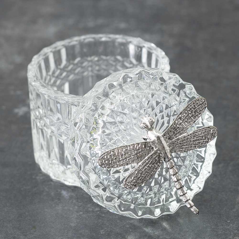 Эта сахарница из прозрачного хрустального стекла добавит элегантности и шика любому столу. Округлая форма и изящная фигурка стрекозы на обложке делают ее уникальным и привлекающим внимание элементом. Идеально подходит не только для повседневного использования, но и в качестве декоративного элемента на кухне или столовой во время вечеринок и особых случаев.