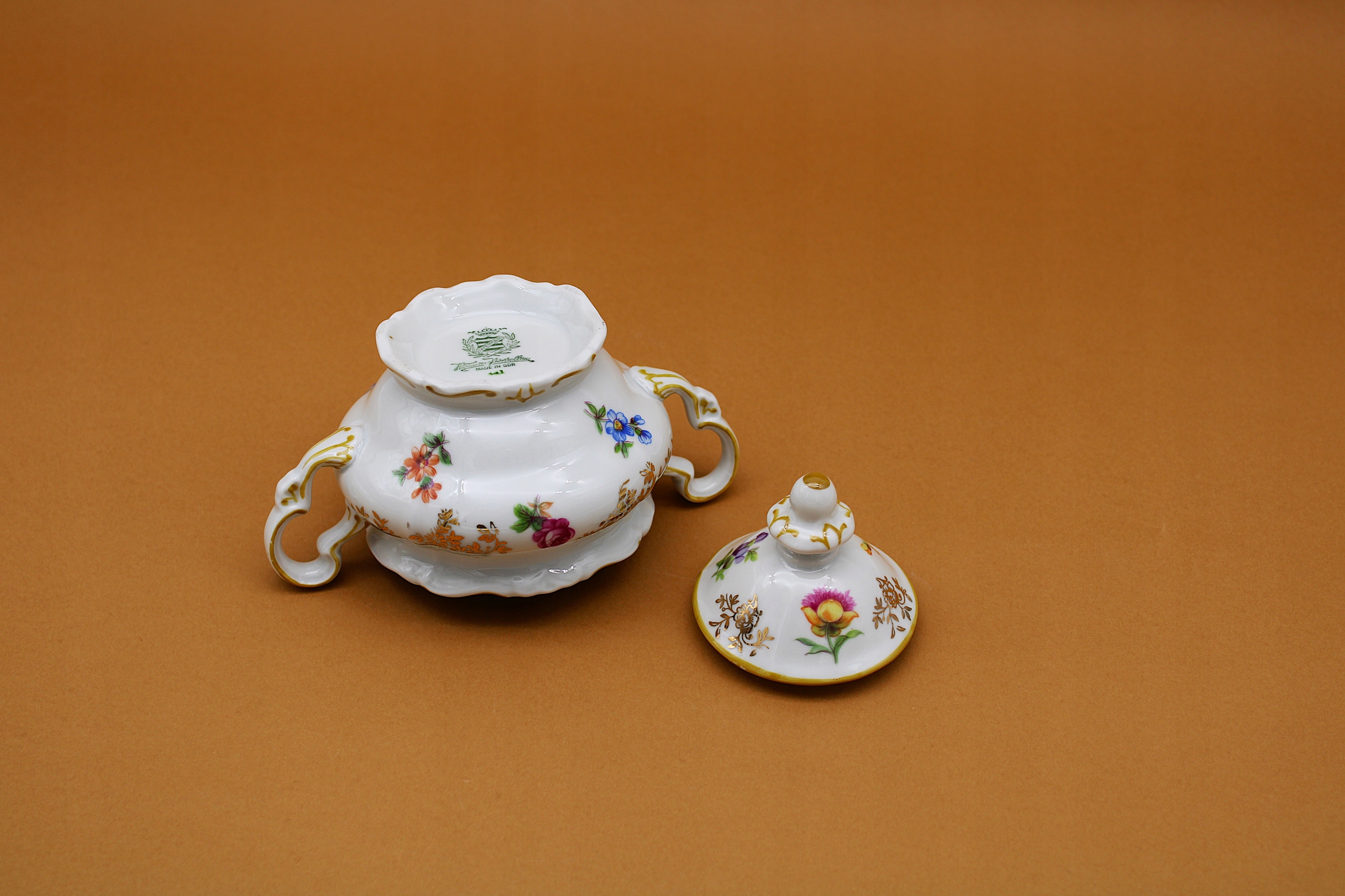 РЕКОМЕНДУЮ ВЕЙМАРСКИЙ ФАРФОРОВЫЙ САХАРНИК ОТ ФАРФОРОВОГО ЗАВОДА BLENKENHEIN - ТЮРИНГИЯ, ВСЕ ОТДЕЛЕНЫ ВРУЧНУЮ, ИЗГОТОВЛЕНЫ МЕЖДУ 1949 И 1980 ГОДАМИ ** ОЧЕНЬ ХОРОШЕЕ СОСТОЯНИЕ, КАК ПОКАЗАНО НА СКАНИРОВАНИИ