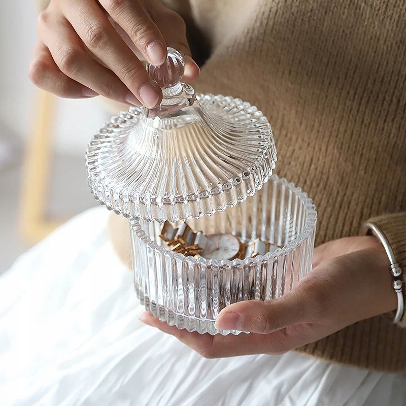 CUKIERNICA SZKLANA POKRYWKĄ CUKIERNICZKA CUKIER SŁODYCZE BIŻUTERIĘ POJEMNIK