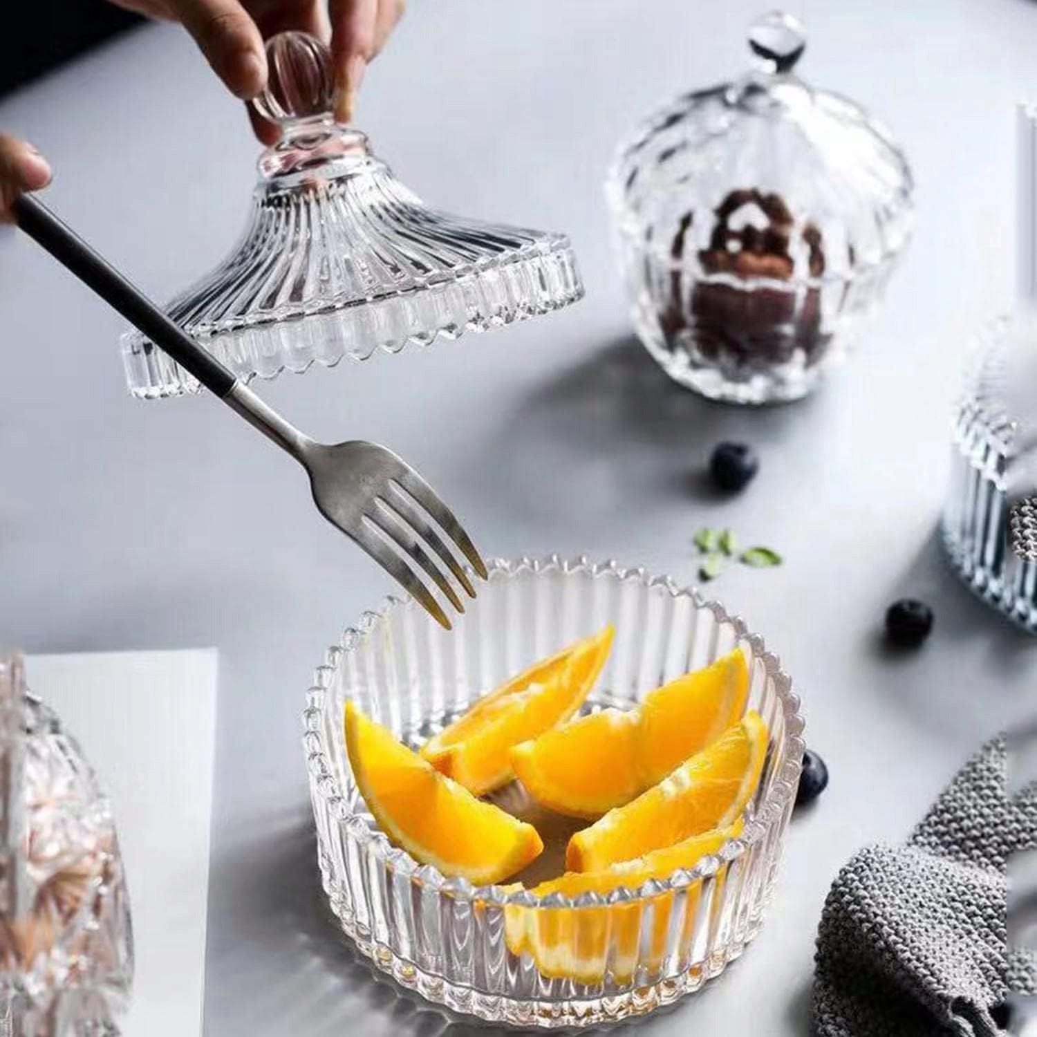 Элегантная сахарница из толстого стекла для сахара, печенья и конфет будет красиво смотреться на вашем столе.