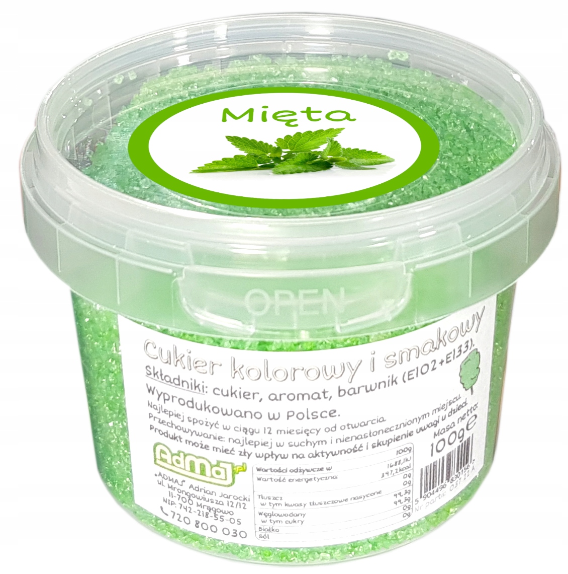 Представляем наше предложение - разноцветный сахар 100гв ведерке, зеленыйс вкус и запах мяты.