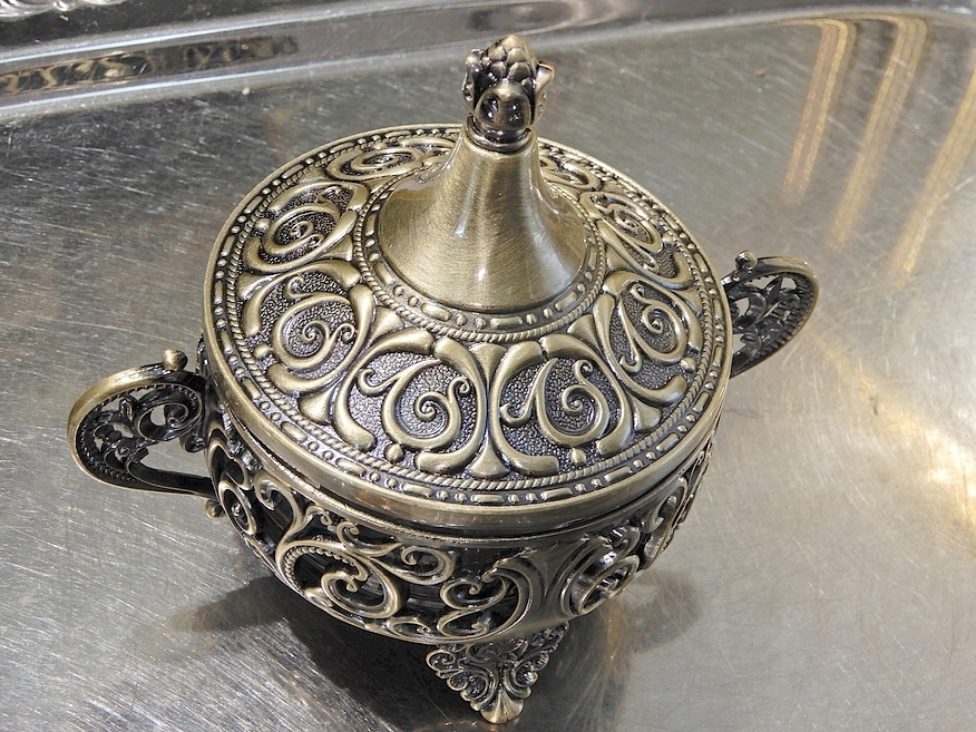Предмет из цинкового сплавного сплавного латуни. 13 см, ср. 9 см. Ширина от ручки mi 14 см