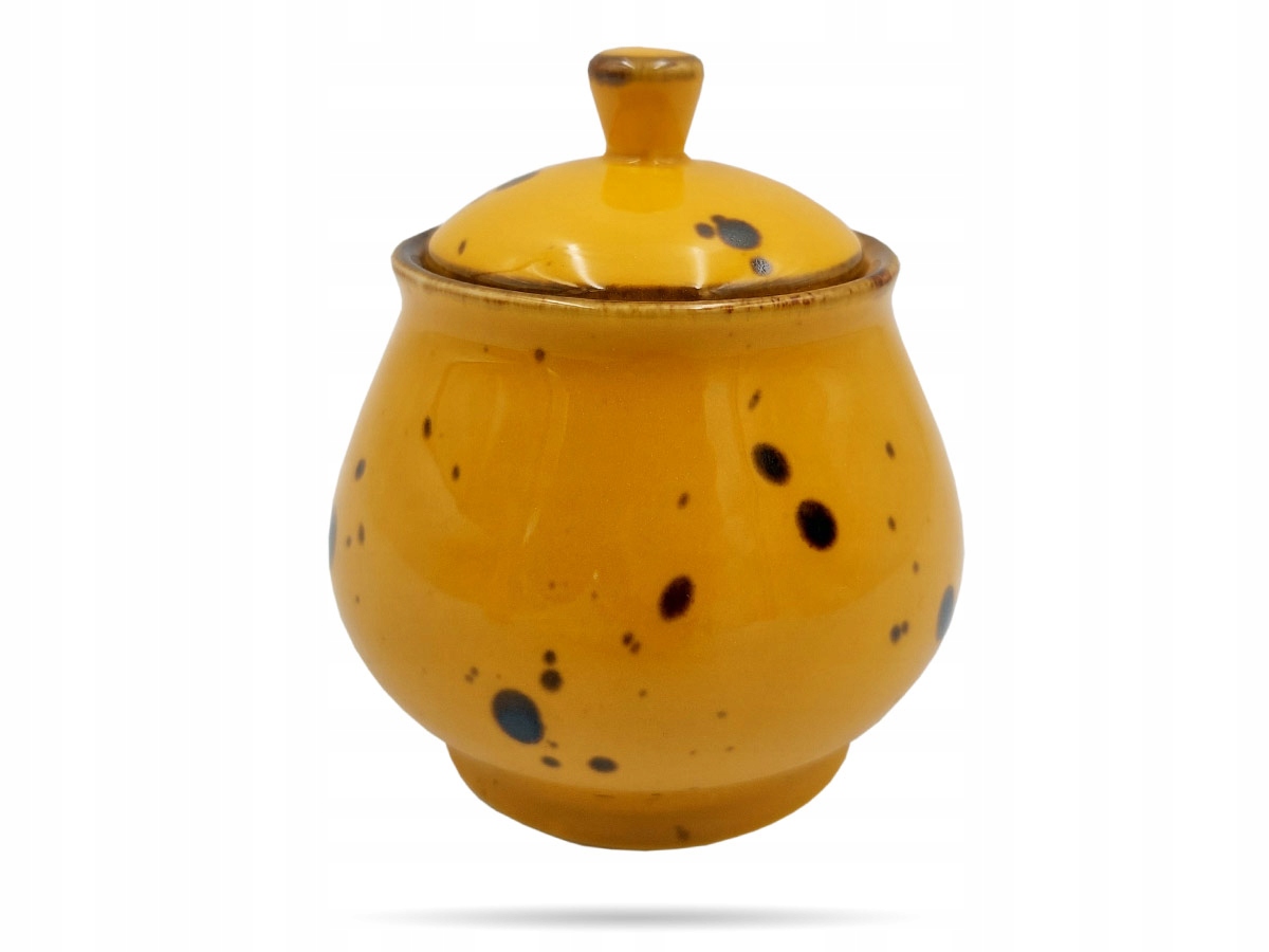Сахарница с крышкой Коттедж Желтый Фарфор Богучице. Емкость 300 мл. Высота 10,5 см. Сахарница с крышкой защитит сахар от загрязнения, а также послужит украшением стола. Его можно мыть в посудомоечной машине и использовать в микроволновой печи. Cottage Yellow Porcelain Bogucice — линия посуды желтого теплого цвета с крапчатым темным узором.