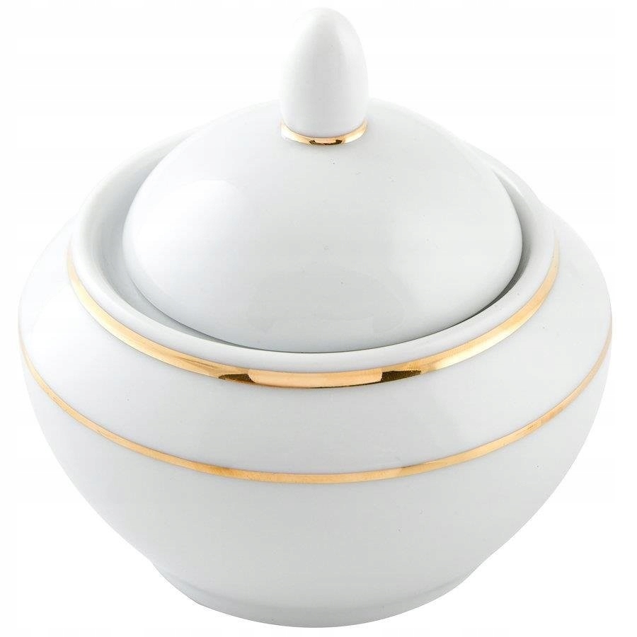 Сахарница «Рита» отличается красивым белым цветом, который подойдет к любому столу. Изысканный золотой декор, окружающий сосуд, придает ему неповторимый стиль. Сахарница изготовлена из высококачественного фарфора от лидера фарфоровых сосудов.