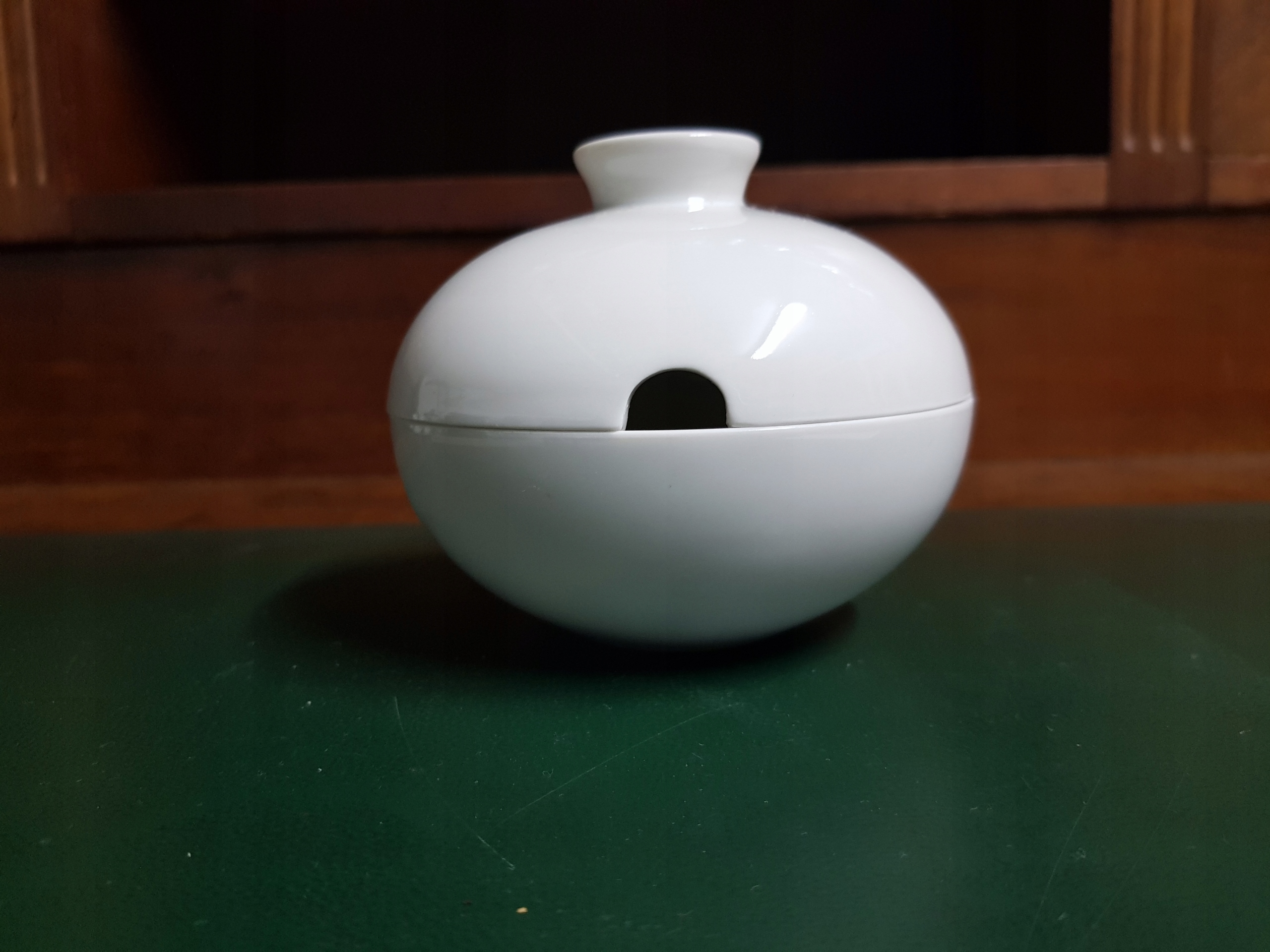 Предмет аукциона – сахарница Hutschenreuther, модель Globus Белый фарфор сферической формы.
