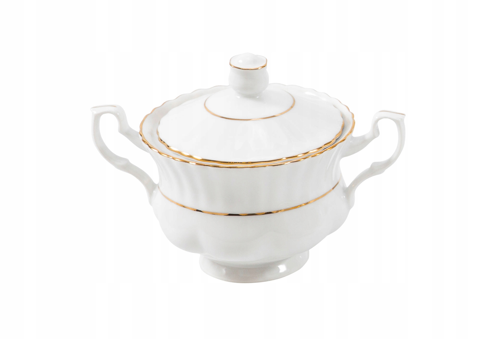 Сахарница в стиле Ивона с декором золотой линией, расписанная высококачественным золотом.