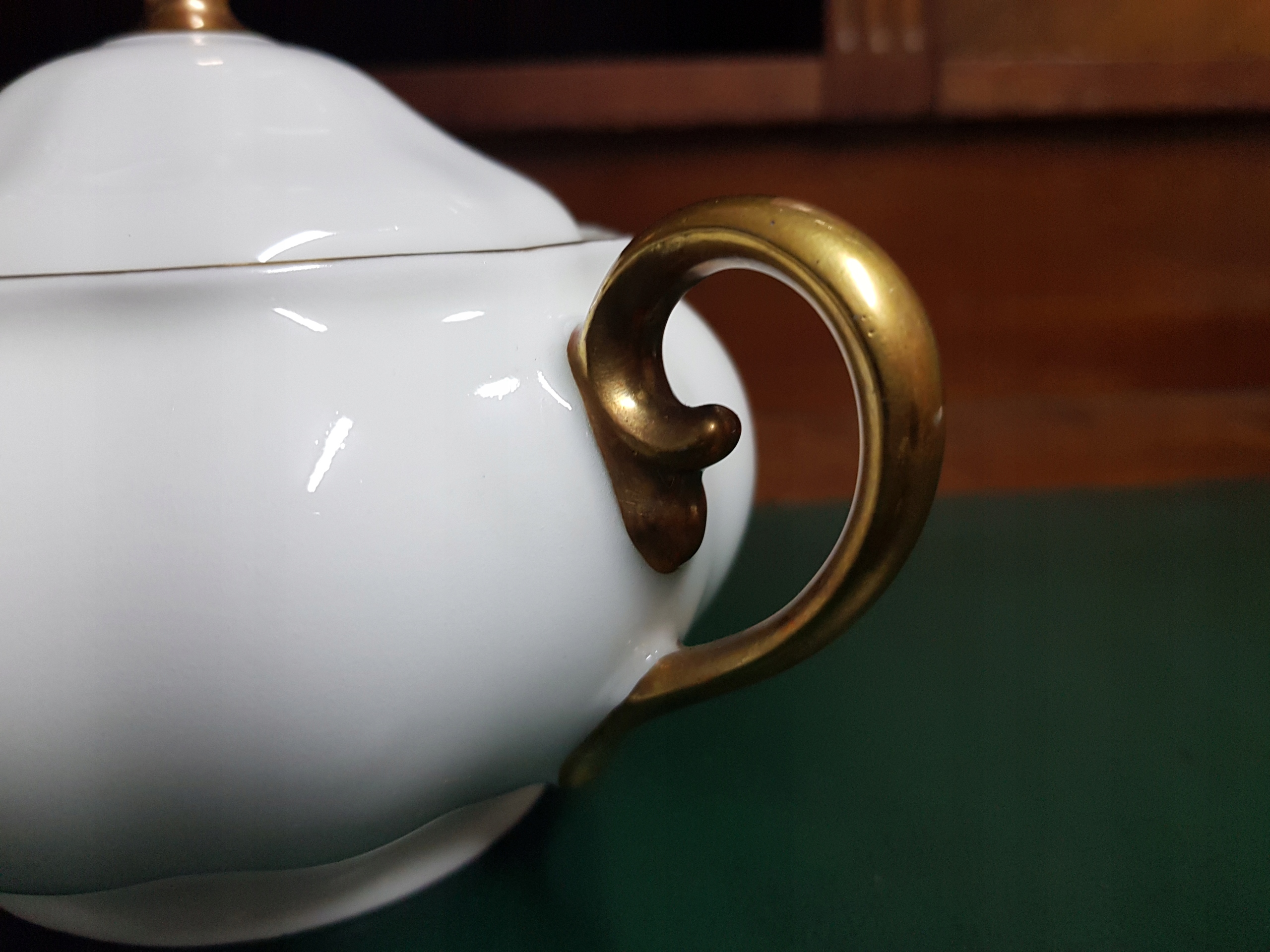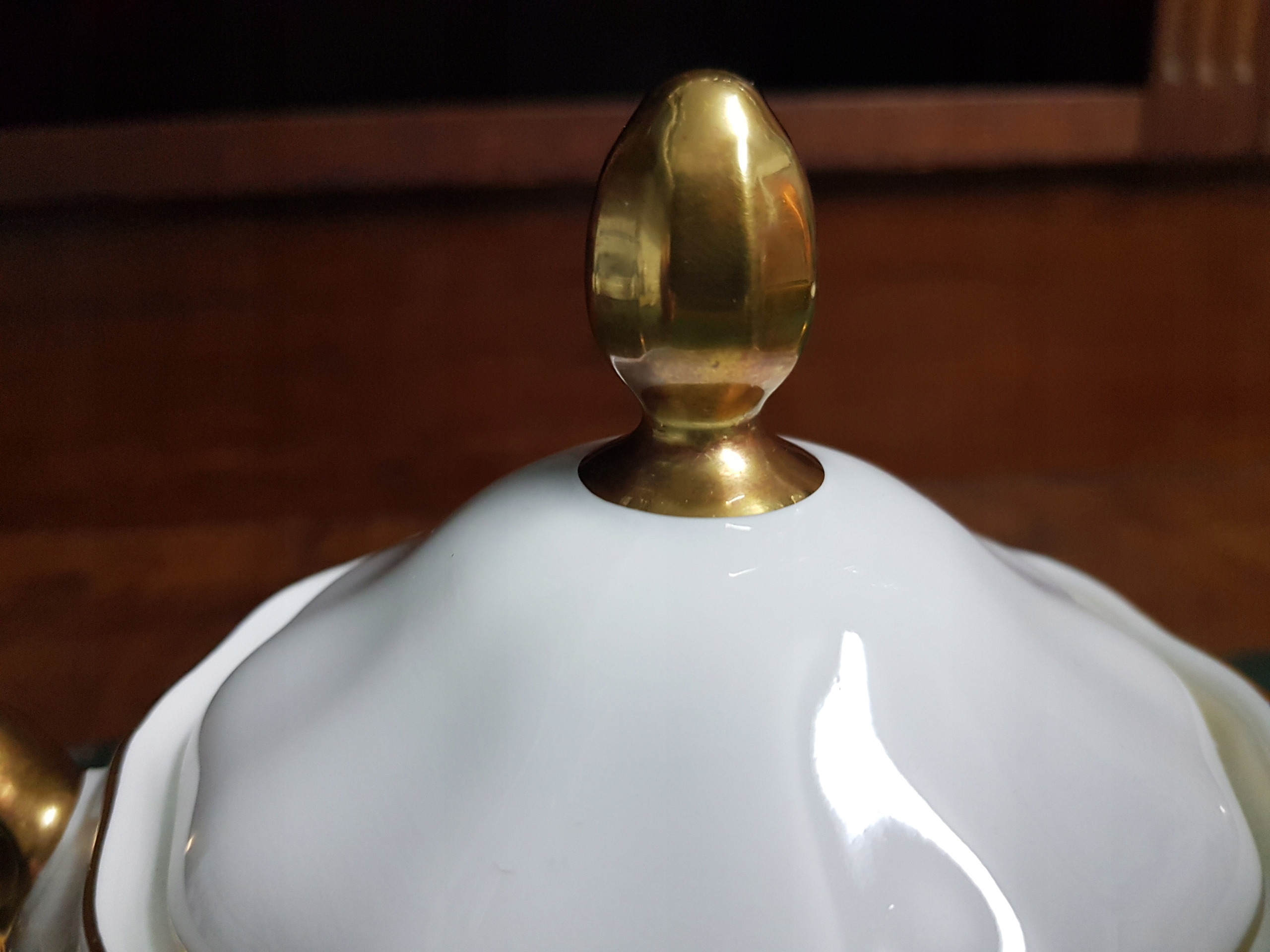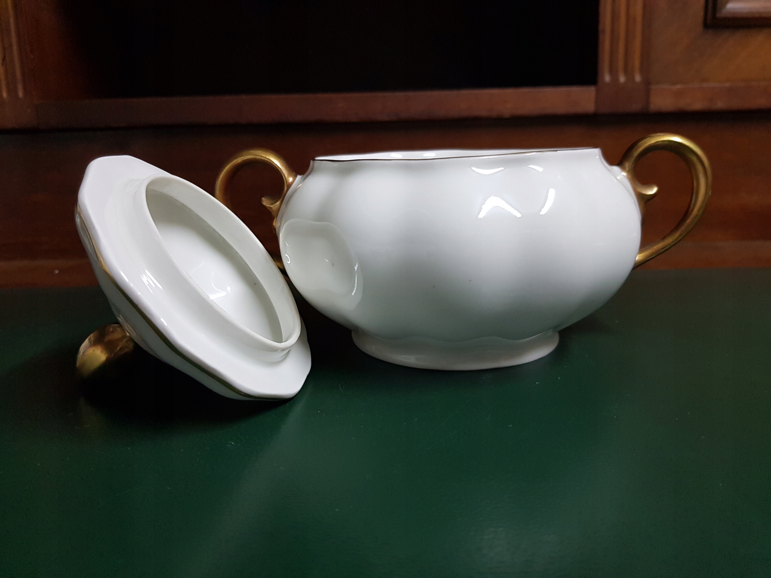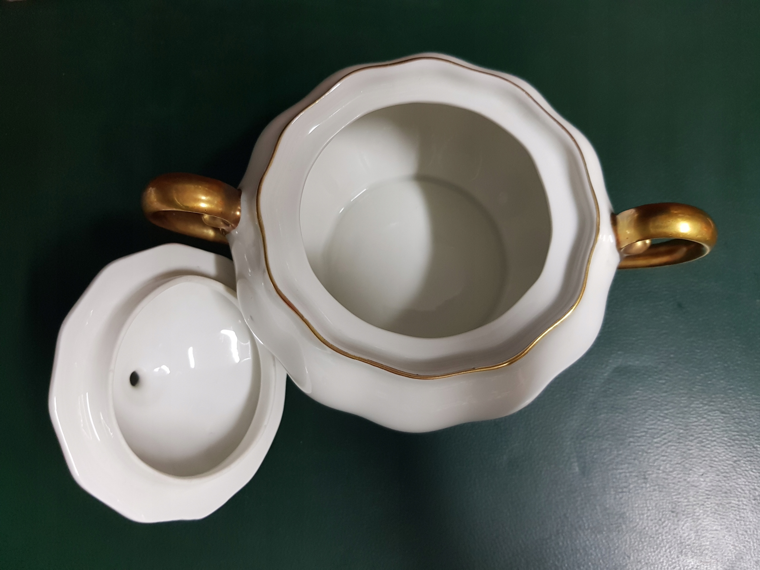 Предмет аукциона – сахарница от Koenigszelt-Jaworzyna Śląska, модель Rosella.Фарфор кремового цвета. Ручки позолоченные
