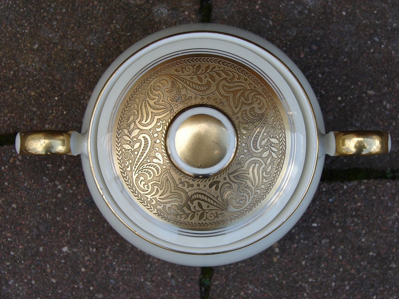 Цукорниця з порцеляни екрю, старовинне золото Eschenbach
