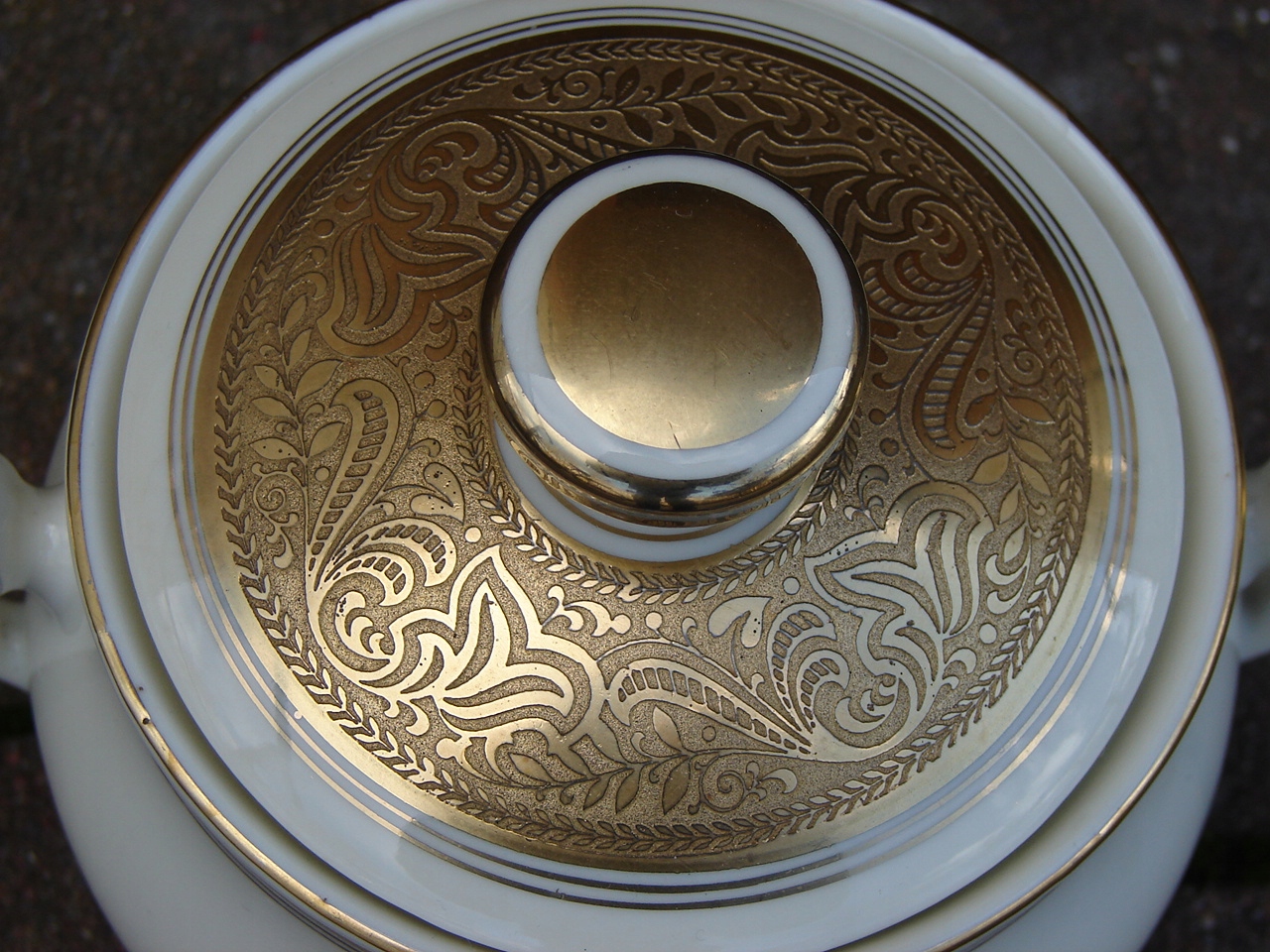 Сахарница - фарфор цвета экрю, декорированная старинным золотом.