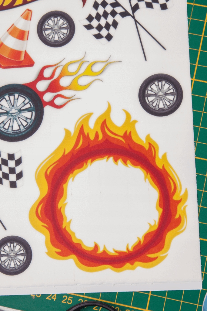 - логотип горячие колеса (10 см х 2,5 см) - 1 шт. 2,5 см) - 4 шт.