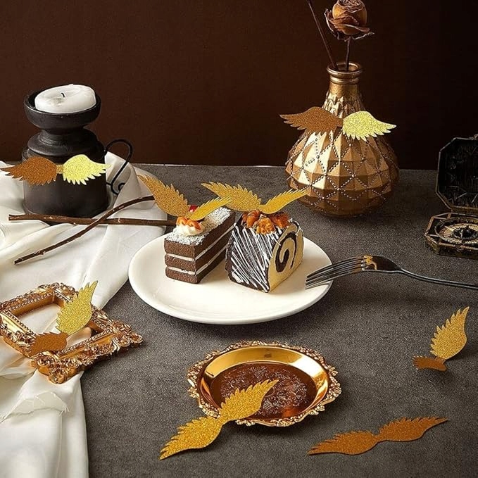 Вы получаете 50 штук двух разных золотых украшений с крыльями, которые снабжены двусторонними клейкими точками в соответствии с вашими потребностями.
