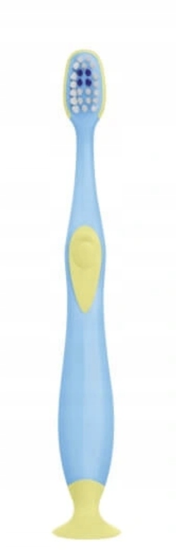 Очень мягкая, длинная и гибкая щетина зубной щетки, разработанная специалистами для защиты б> Детские зубы против бактерий. Цветные щетинки в центре головки щетки указывают на то, что вы использовали правильное количество зубной пасты. Прорезиненная маленькая круглая головка щетки обеспечивает максимальную защиту во время использования. В нижней части щетки имеется присоска.