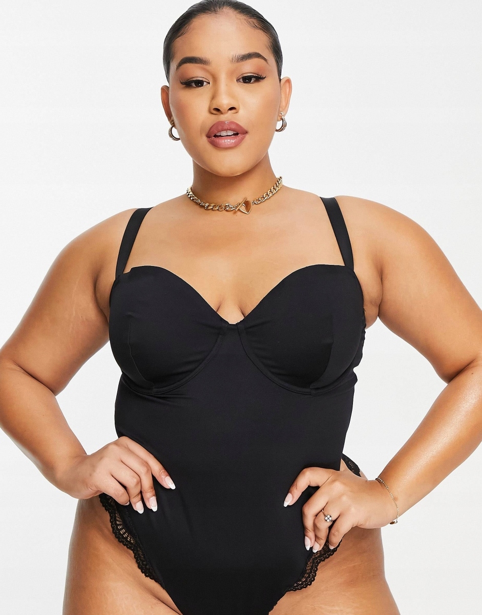 БОДИ CURVE ГЛАДКИЙ С КРУЖЕВОМ, ЧЕРНЫЙ, С ЛЕНТАМИ 30DD