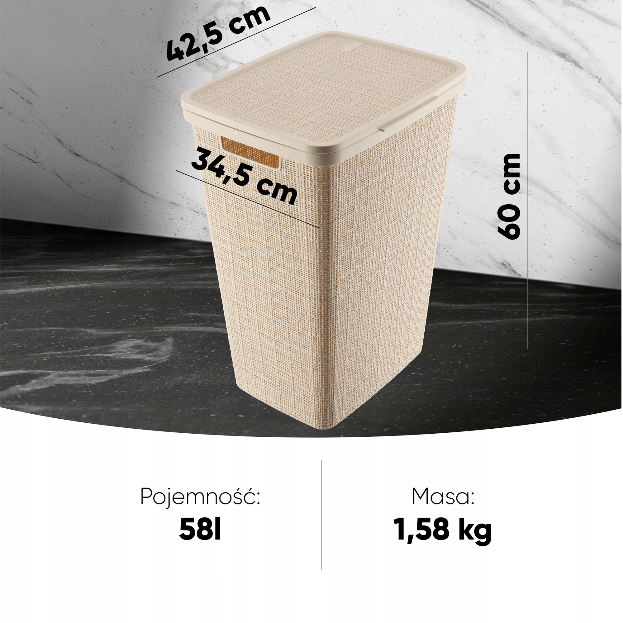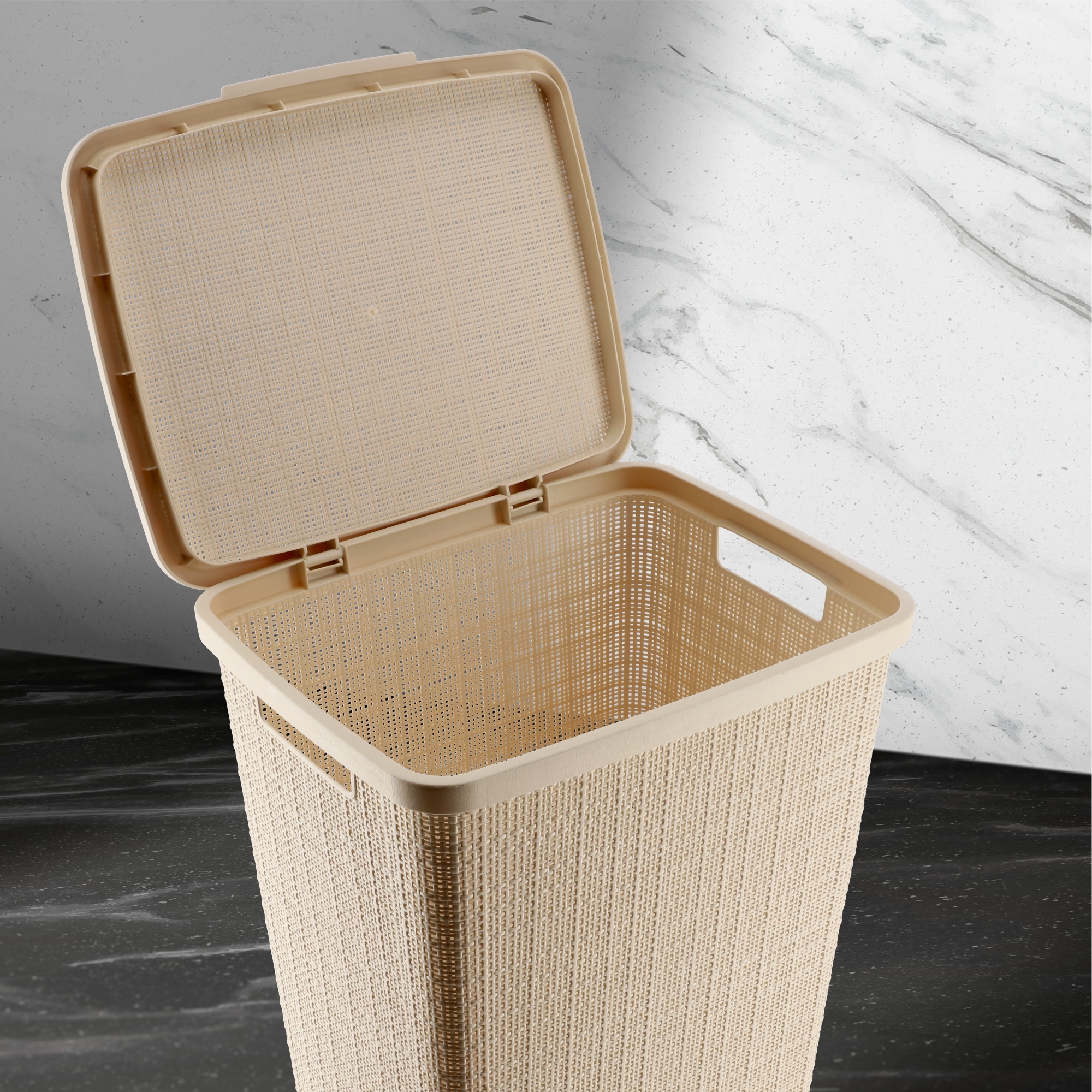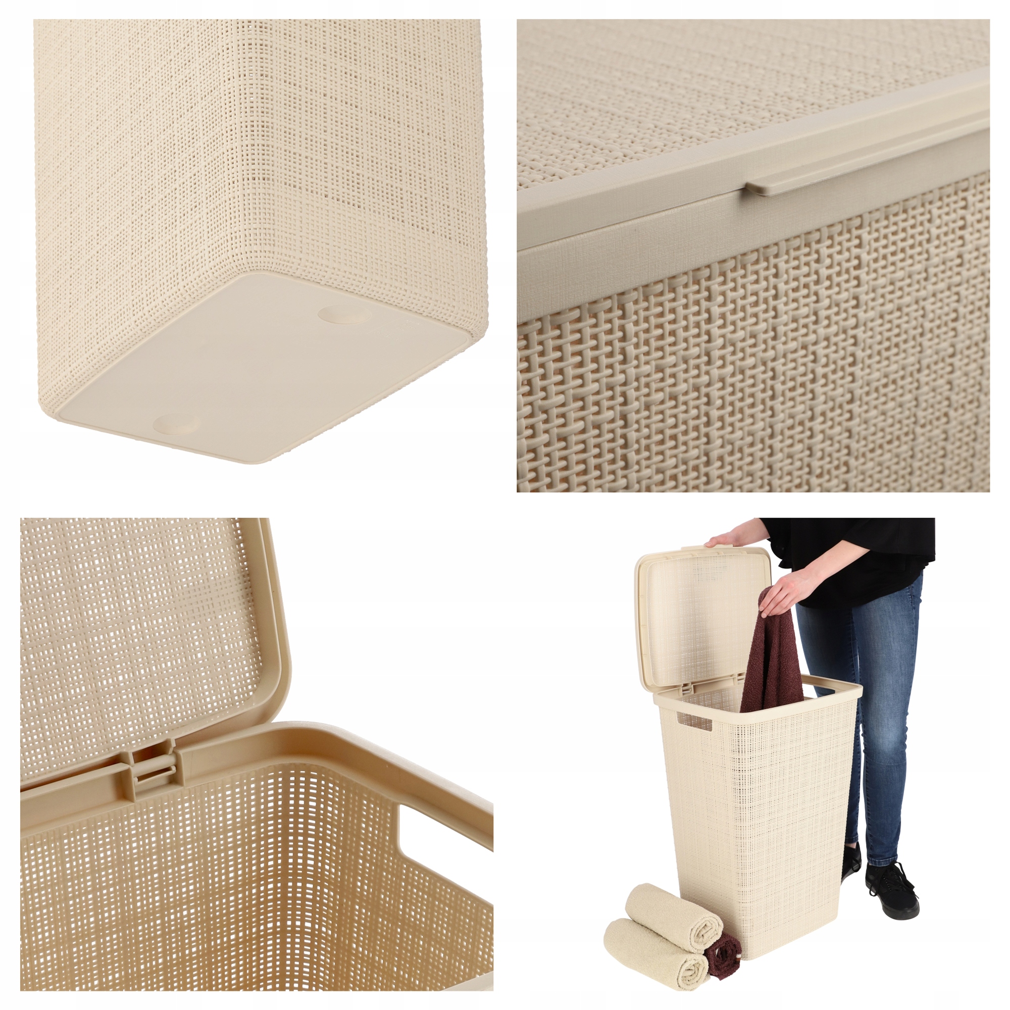Красота формы, вдохновленная простотой, обусловлена материалом. Материал не только легкий, но еще прочный и прочный. Он прослужит вам долгие годы и эффективно позаботится о вашем белье. Мы оснастили наш контейнер откидной крышкой. Он обеспечивает плотное закрытие корзины, предотвращает выход неприятных запахов и предотвращает попадание насекомых и насекомых. Приложение? Ваша одежда под защитой — с момента заброса внутрь и до попадания в стиральную машину!