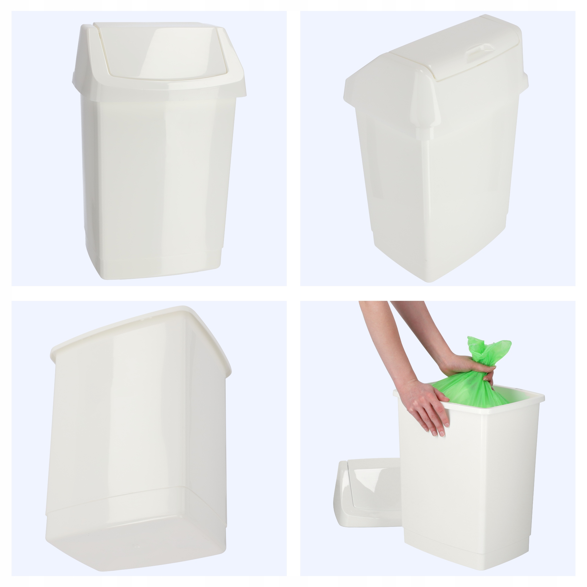 Проблема с неприятным запахом, исходящим из мусорной корзины с обеденными отходами? Покончите с этим раз и навсегда и воспользуйтесь нашей мусорной корзиной! Плотная вращающаяся крышка обеспечивает двойное удобство. Прежде всего: он не позволит неприятным запахам выйти из салона. Во-вторых: выбрасывать бумагу, мусор или бутылки станет намного удобнее.