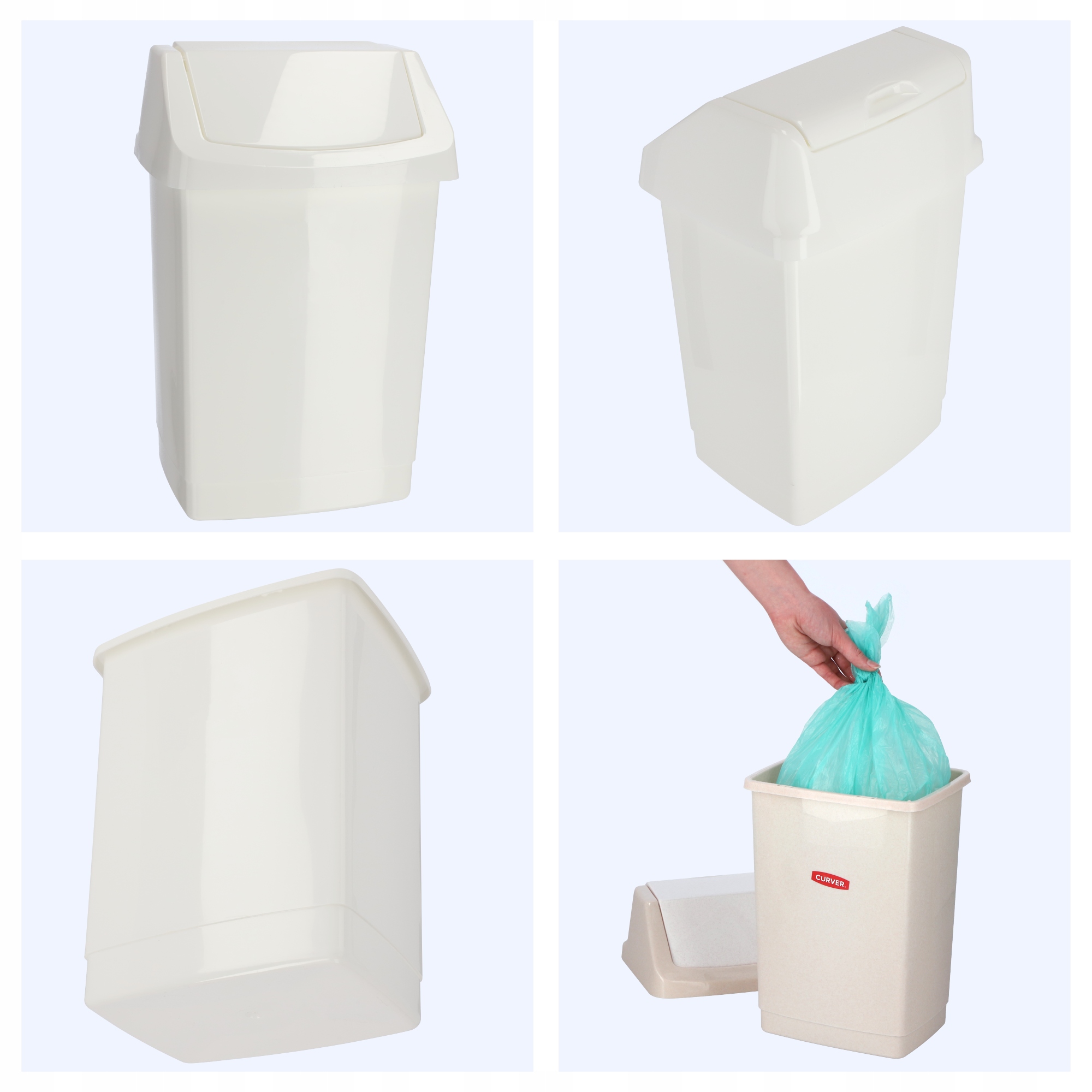 Проблема с неприятным запахом, исходящим из мусорной корзины с обеденными отходами? Покончите с этим раз и навсегда и воспользуйтесь нашей мусорной корзиной! Плотная вращающаяся крышка обеспечивает двойное удобство. Прежде всего: он не позволит неприятным запахам выйти из салона. Во-вторых: выбрасывать бумагу, мусор или бутылки станет намного удобнее.